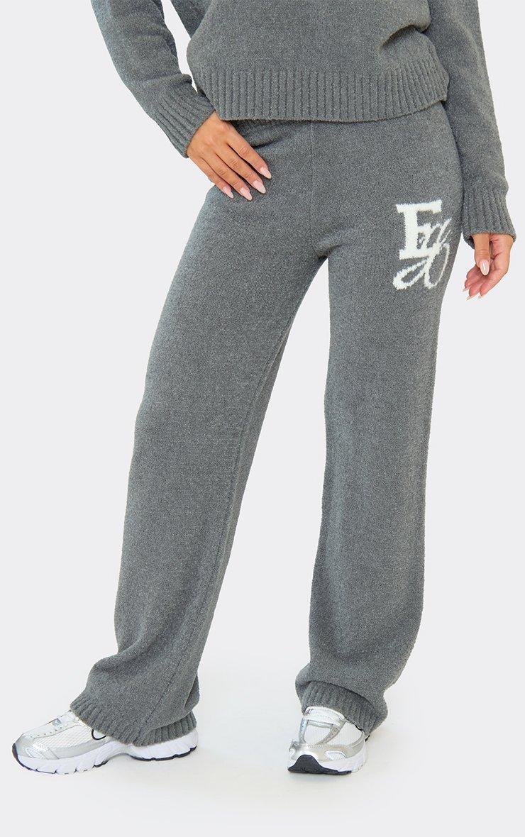 Mid Rise Wide Leg Ego Graphic Trousers In Grey Knit