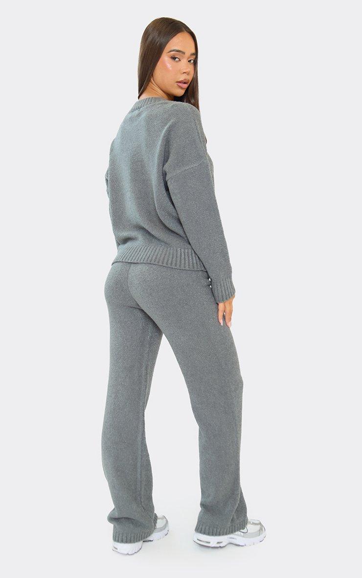 Tie Waist Wide Leg Trousers In Grey Marl Knit