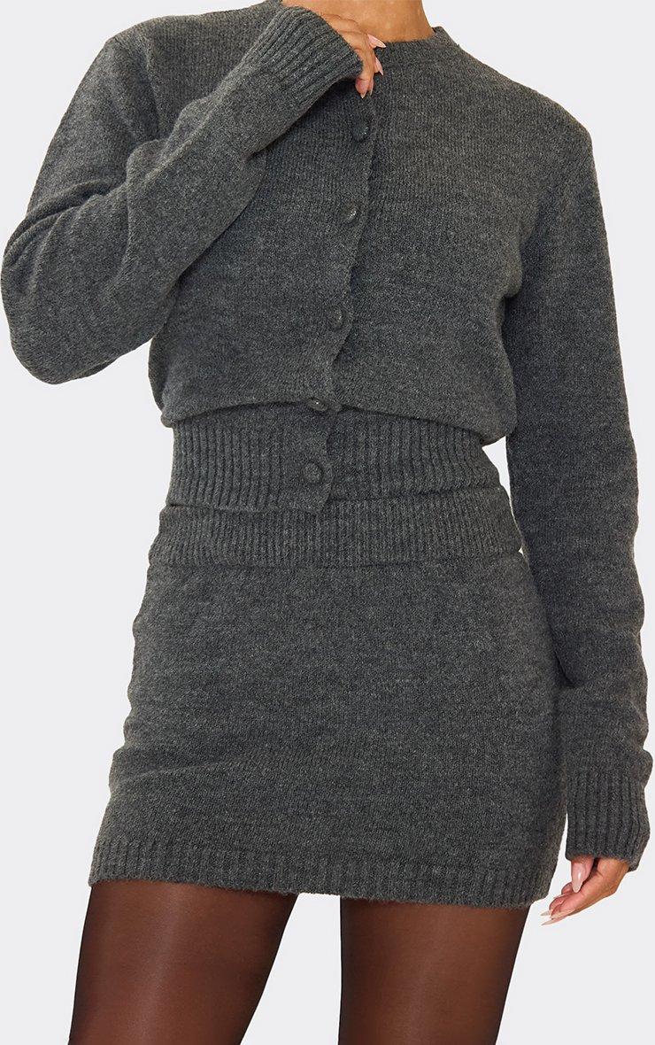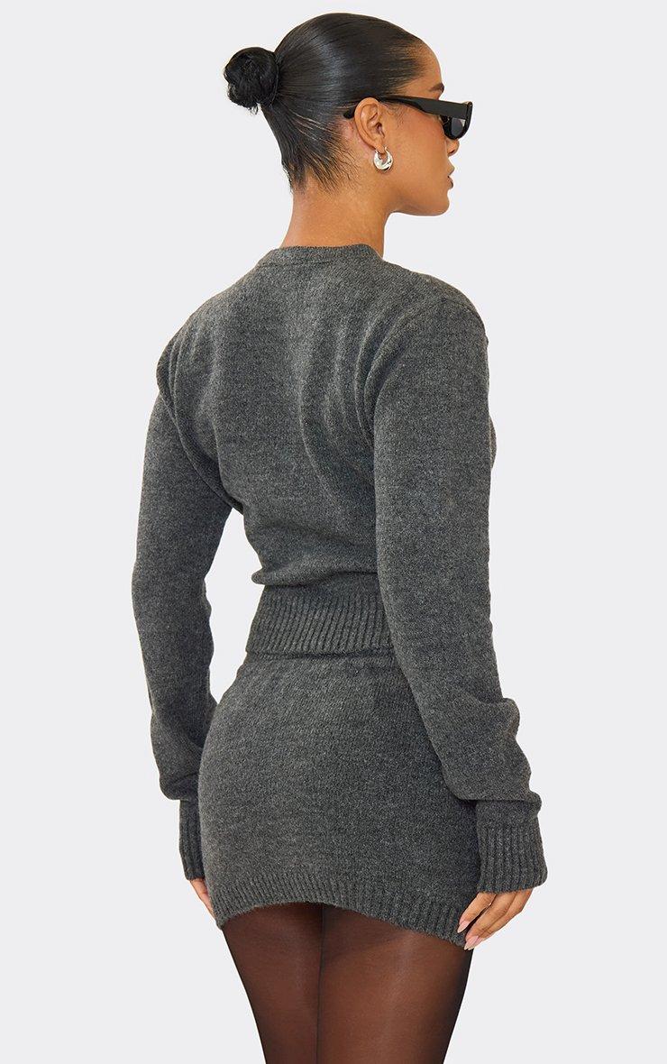 Elastic Waist Mini Skirt In Dark Grey Soft Knit