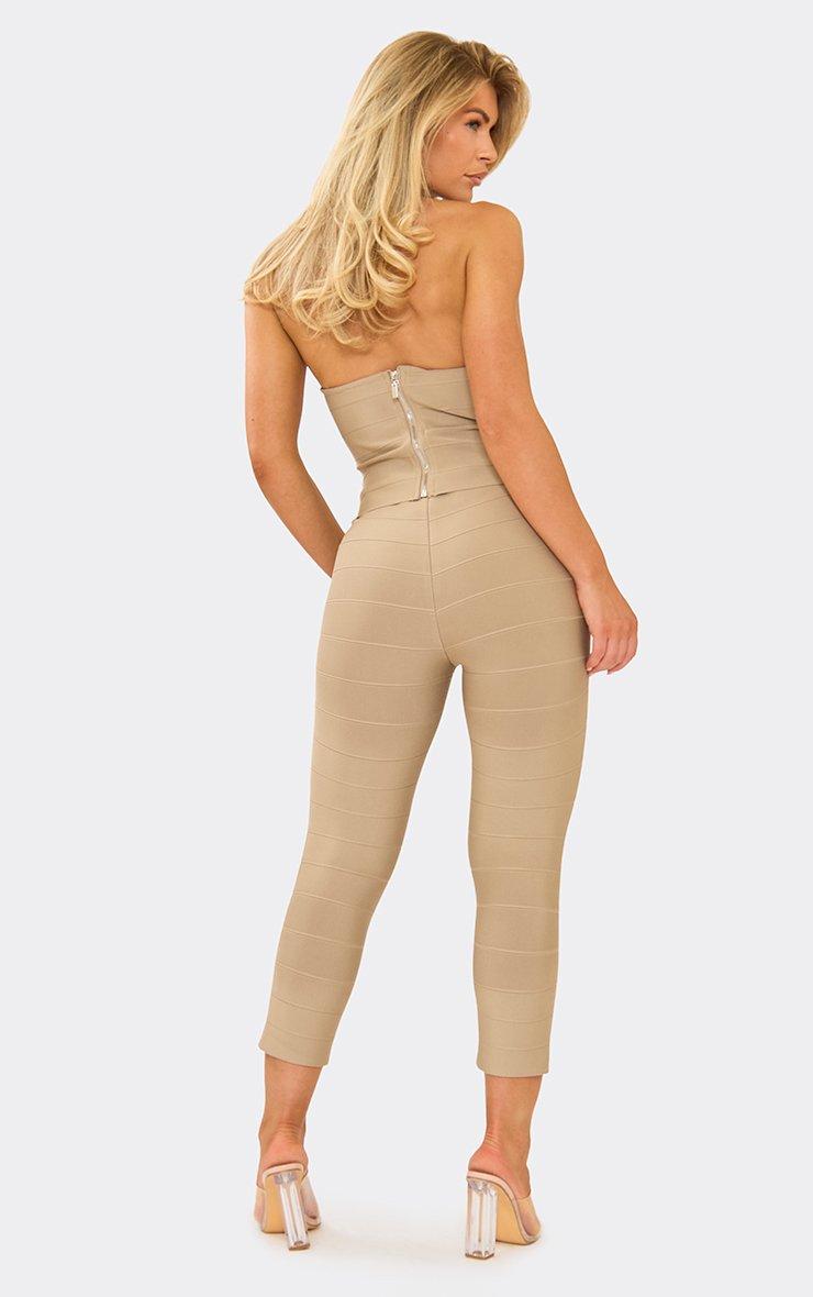 Bandeau Fringe Detail Dipped Hem Top In Stone