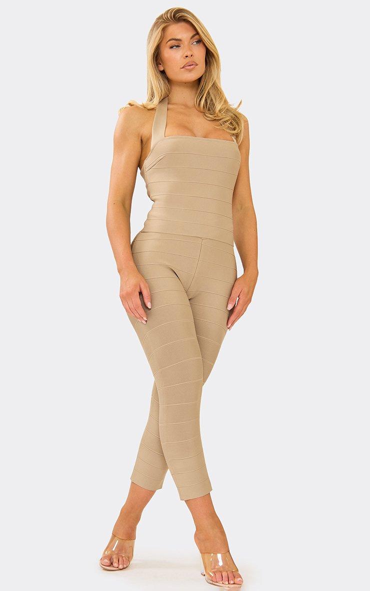 Sleeveless Button Through Waistcoat Top And Short Co-Ord Set In Stone
