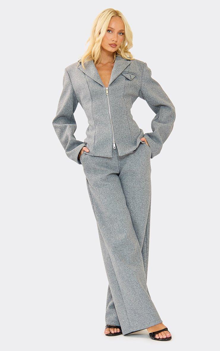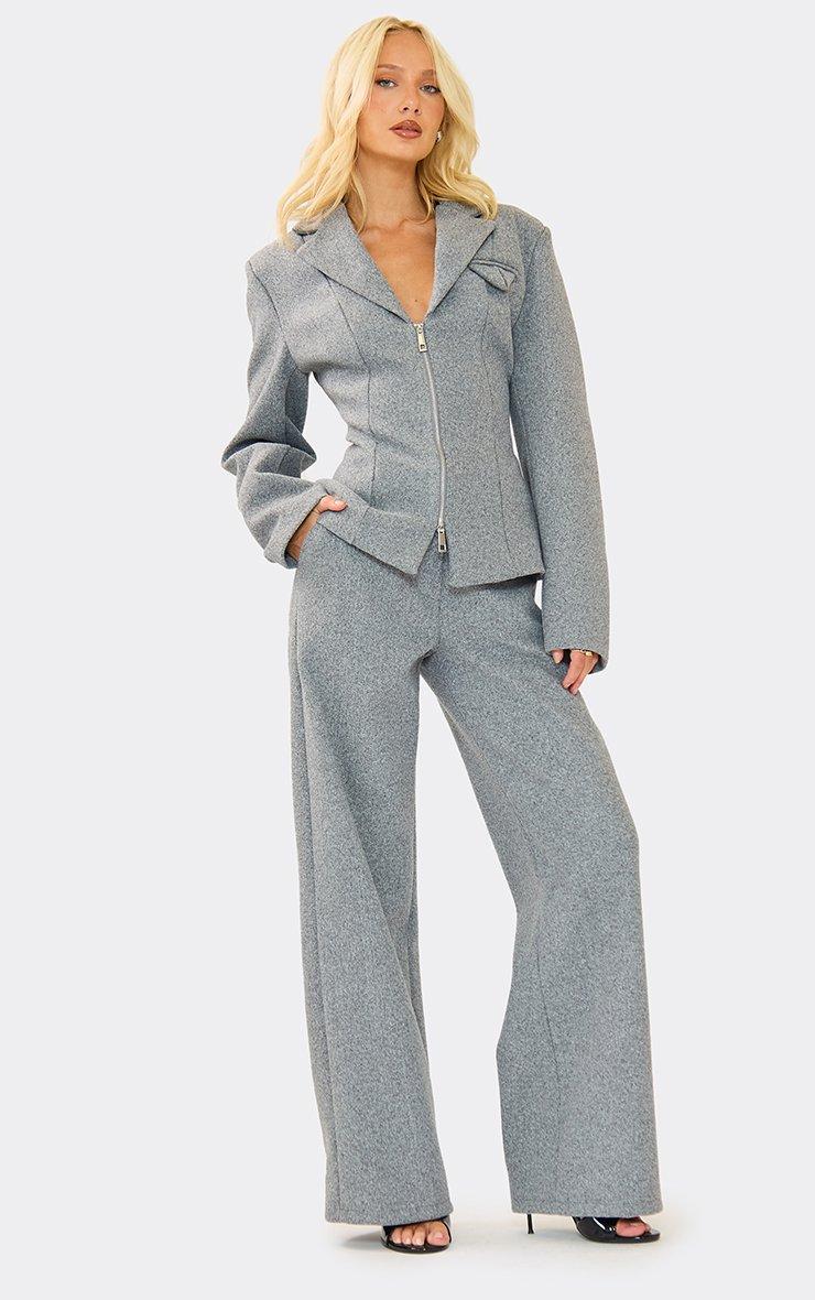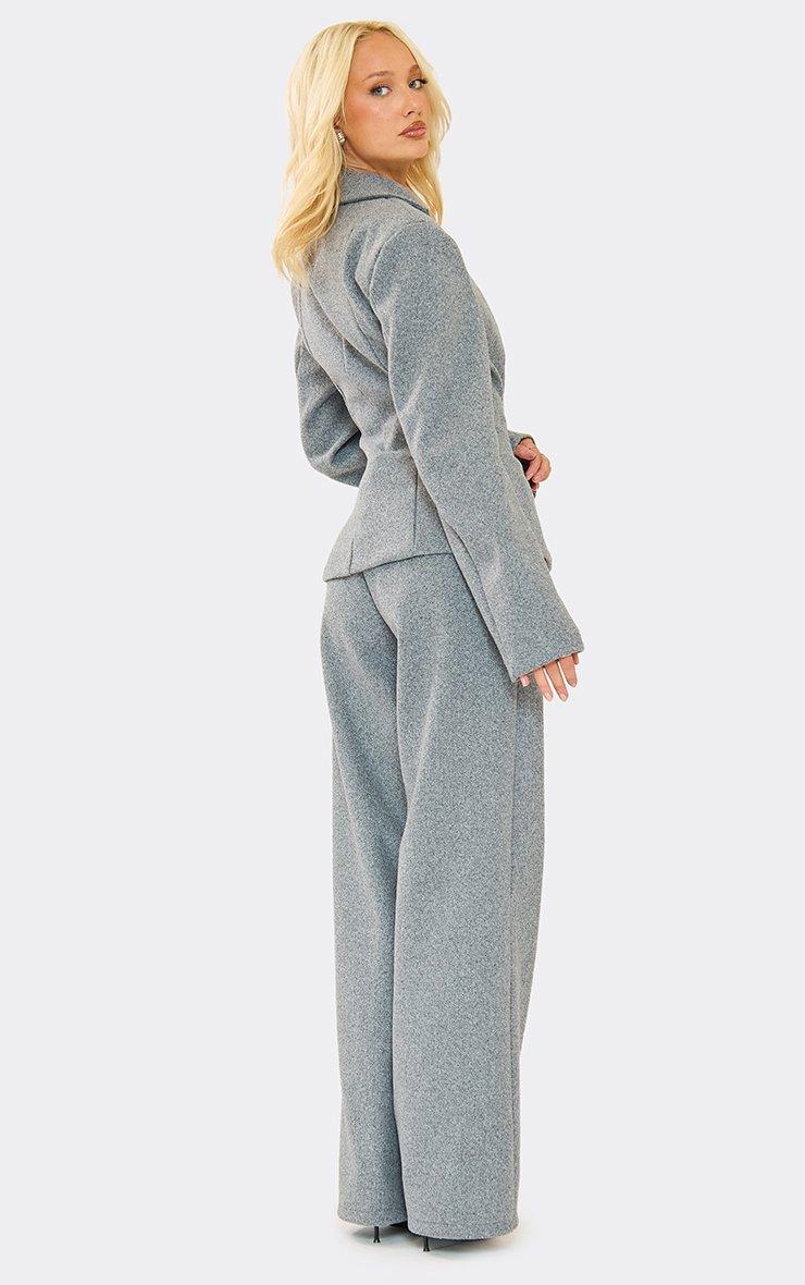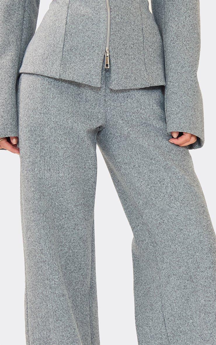 Mid Rise Wool Look Straight Leg Tailored Trousers In Grey