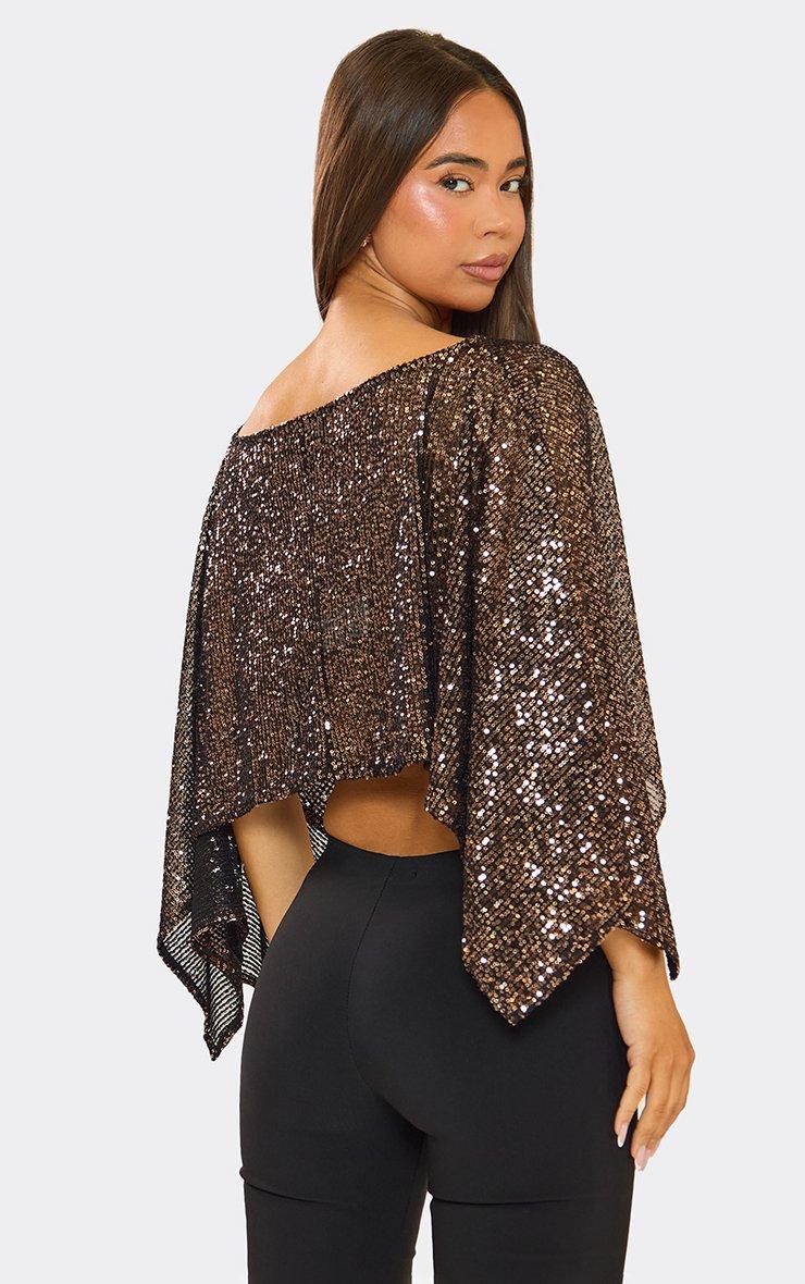 Floaty Cape Top In Bronze Sequin