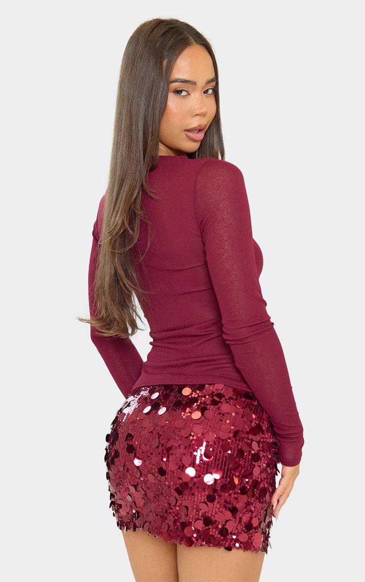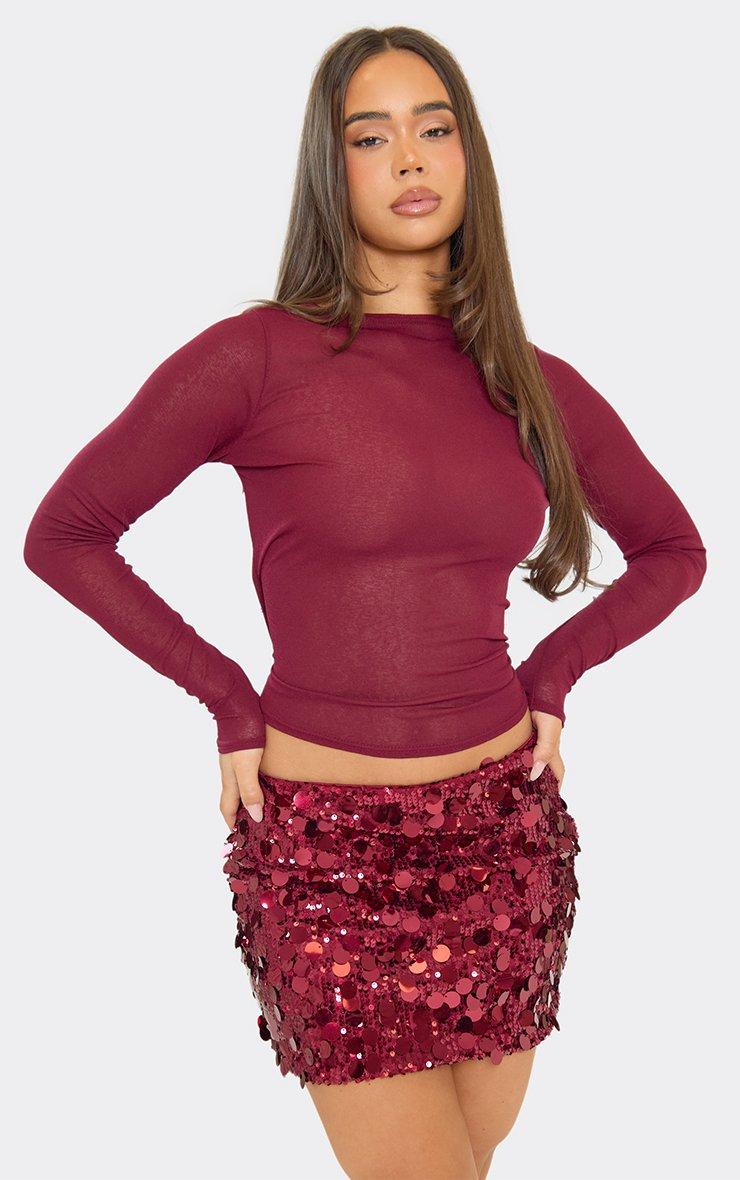 Mid Rise Mini Skirt In Burgundy Textured Sequin