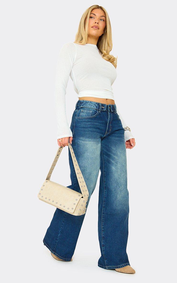 Extreme Low Rise Wide Leg Jeans In Washed Dark Blue Denim