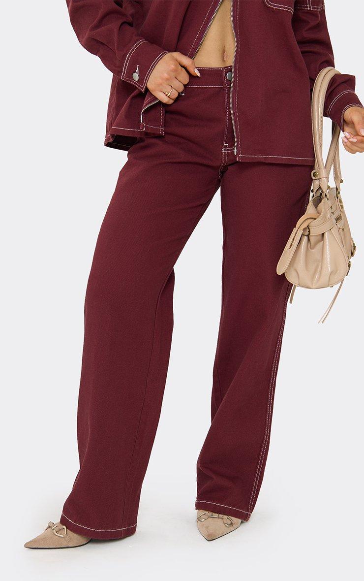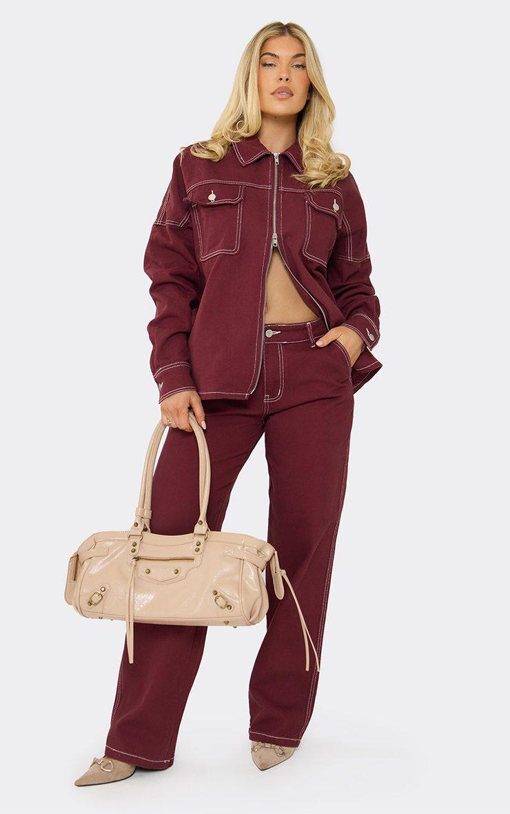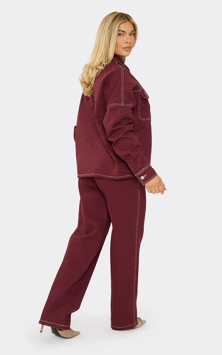 Seam Detail Pocket Front Boxy Jacket In Burgundy Denim