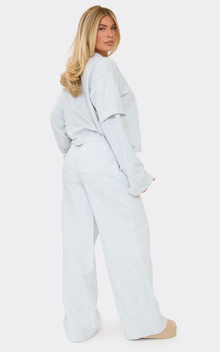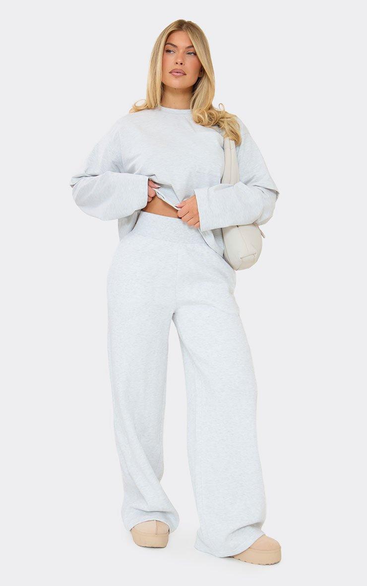 Pocket Detail Wide Leg Joggers In Light Grey Marl