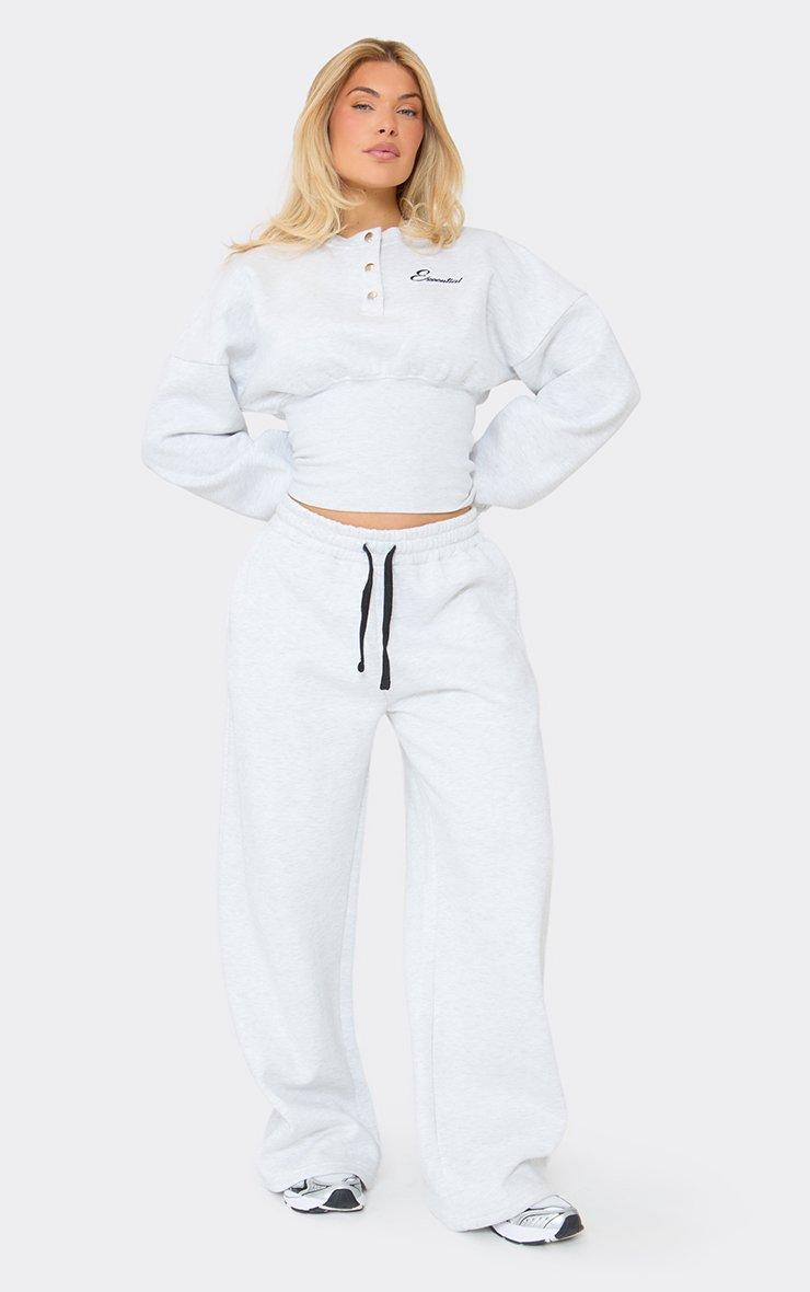 Low Waist Wide Leg Joggers In Light Grey Marl