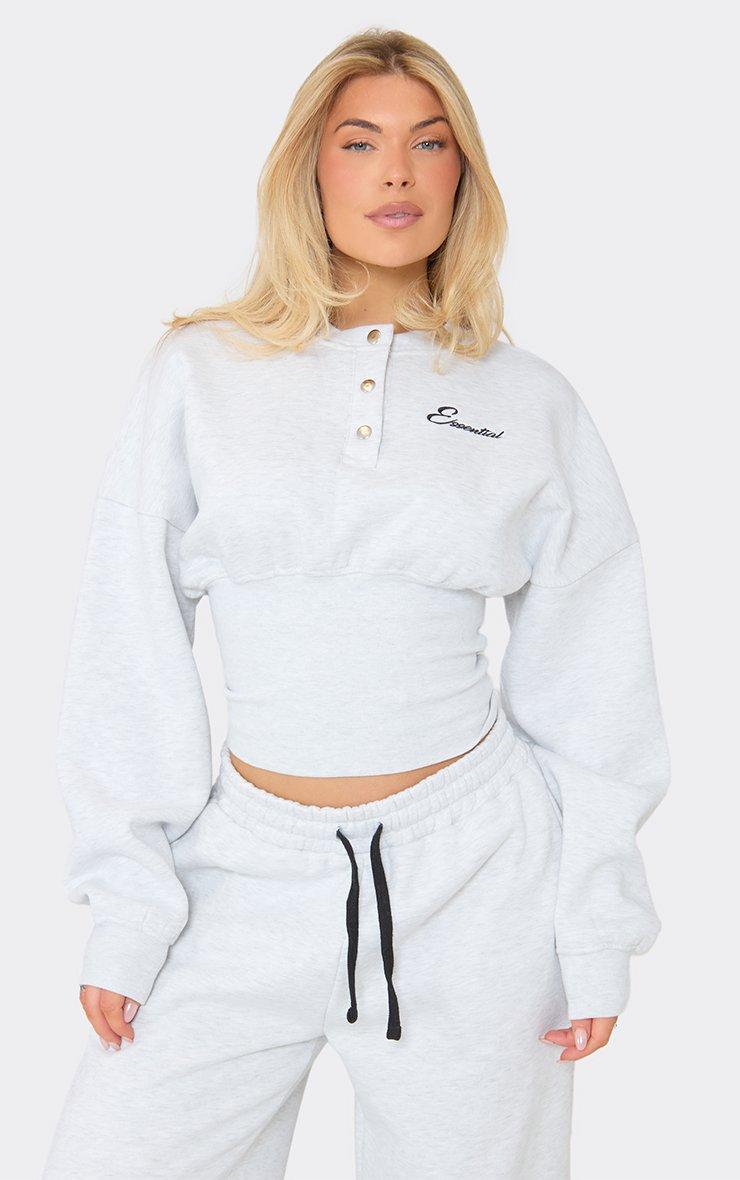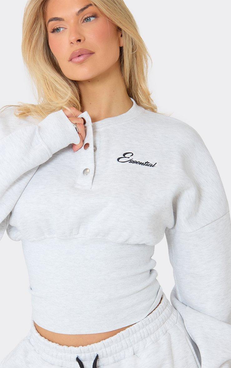 Cinched Waist Essential Embroidered Graphic Popper Detail Sweatshirt In Light Grey Marl