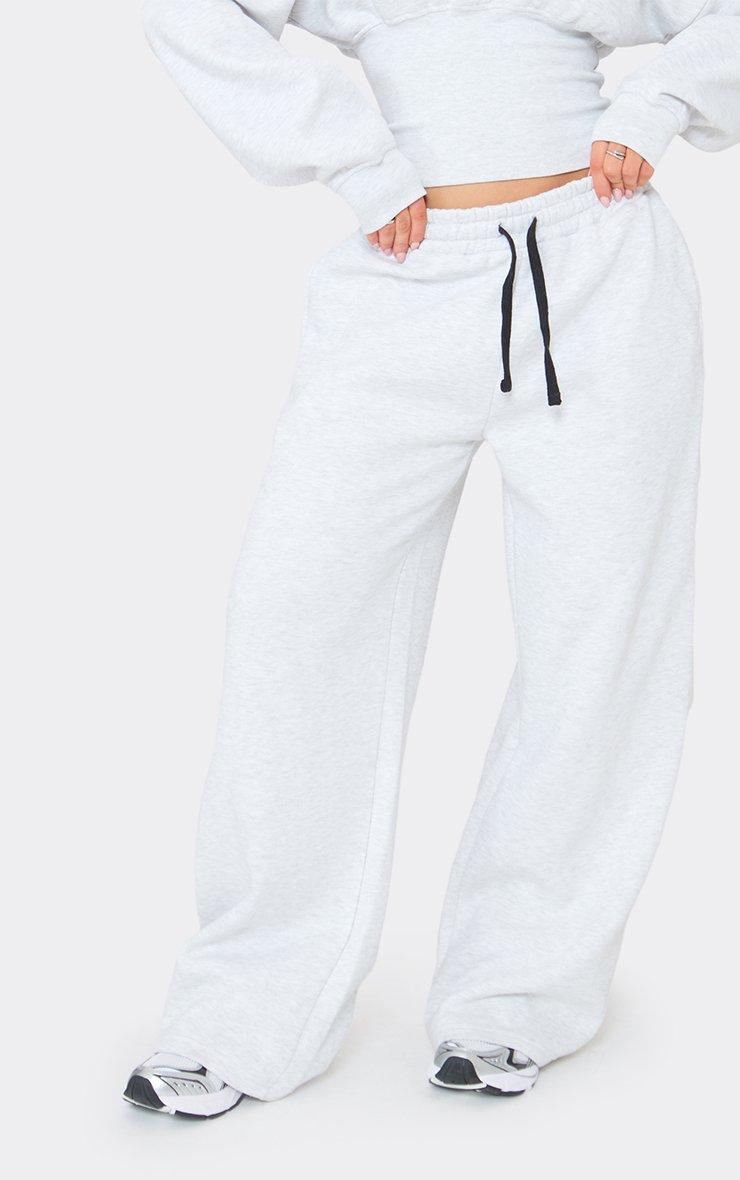 Low Waist Wide Leg Joggers In Light Grey Marl