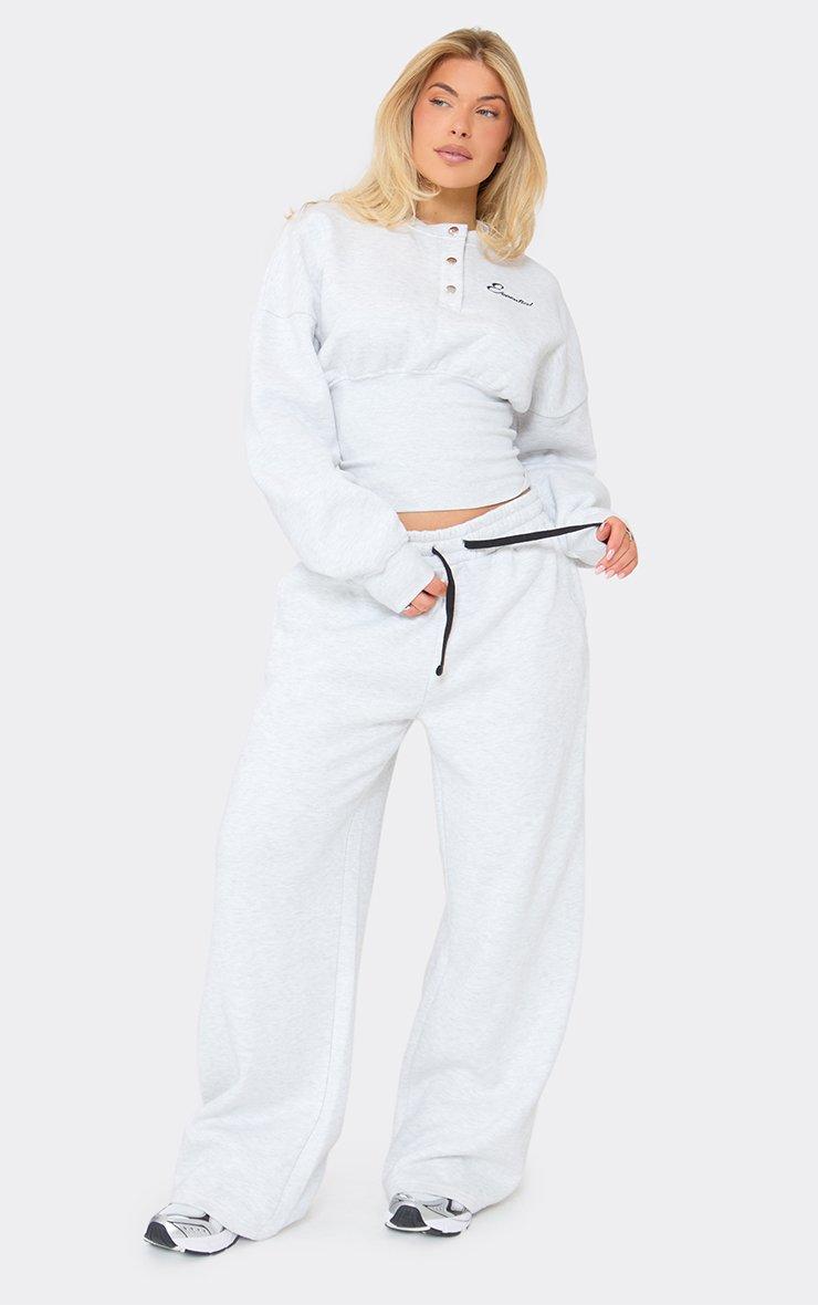 low rise wide leg essential embroidered graphic joggers in light grey marl
