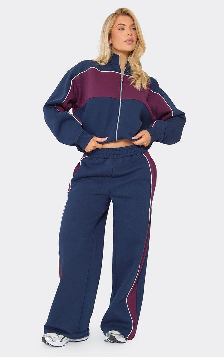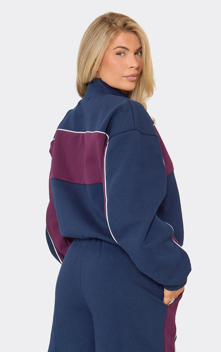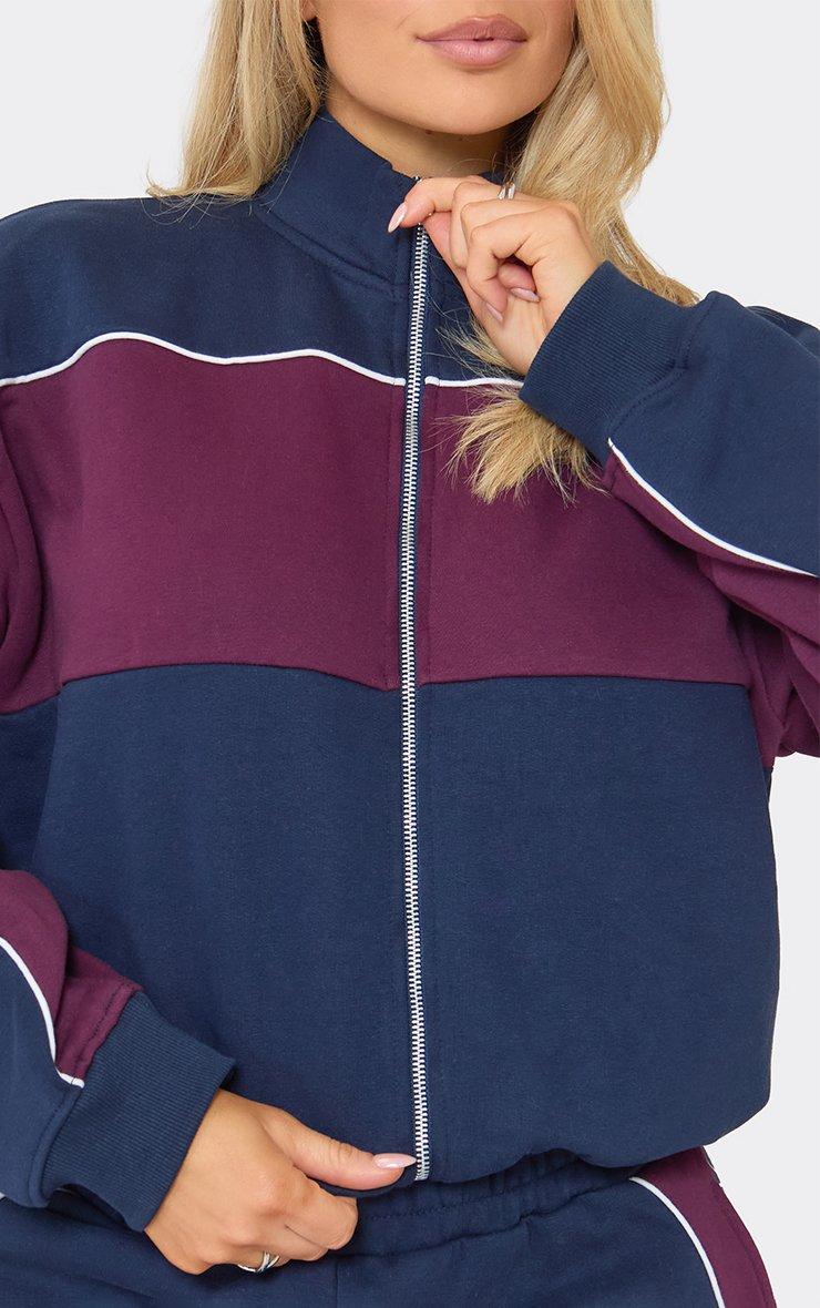 Contrast Detail Zip Up Sweatshirt In Navy Blue