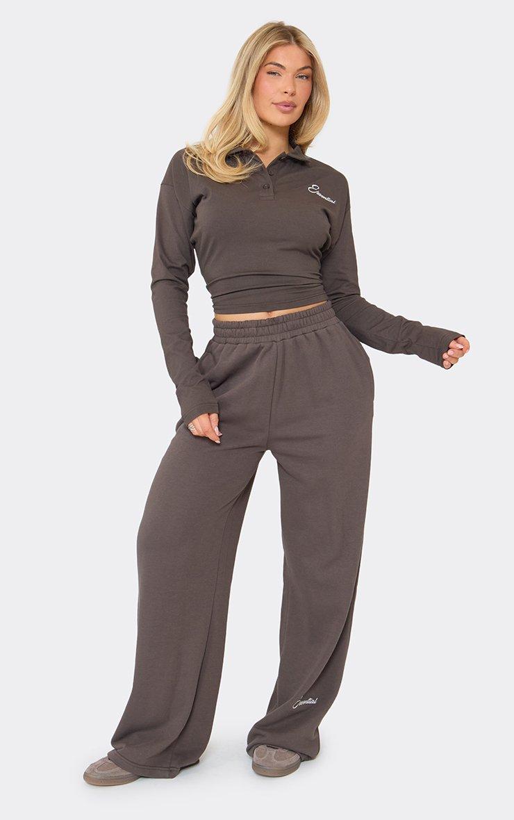 Low Rise Wide Leg Detail Joggers In Chocolate