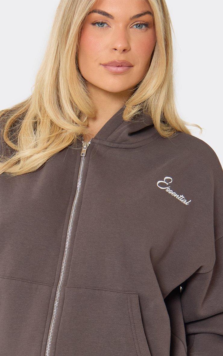 Boxy Oversized Essential Graphic Zip Up Hoodie In Chocolate Brown