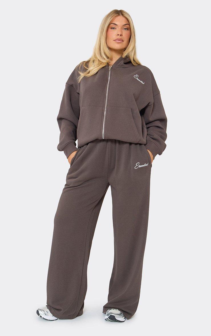 Low Rise Wide Leg Detail Joggers In Chocolate