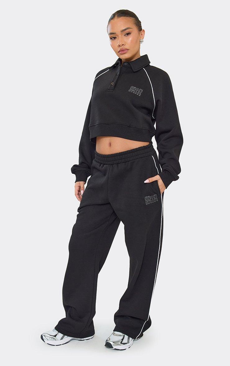 Low Rise 'Min Min' Graphic Wide Leg Joggers In Black