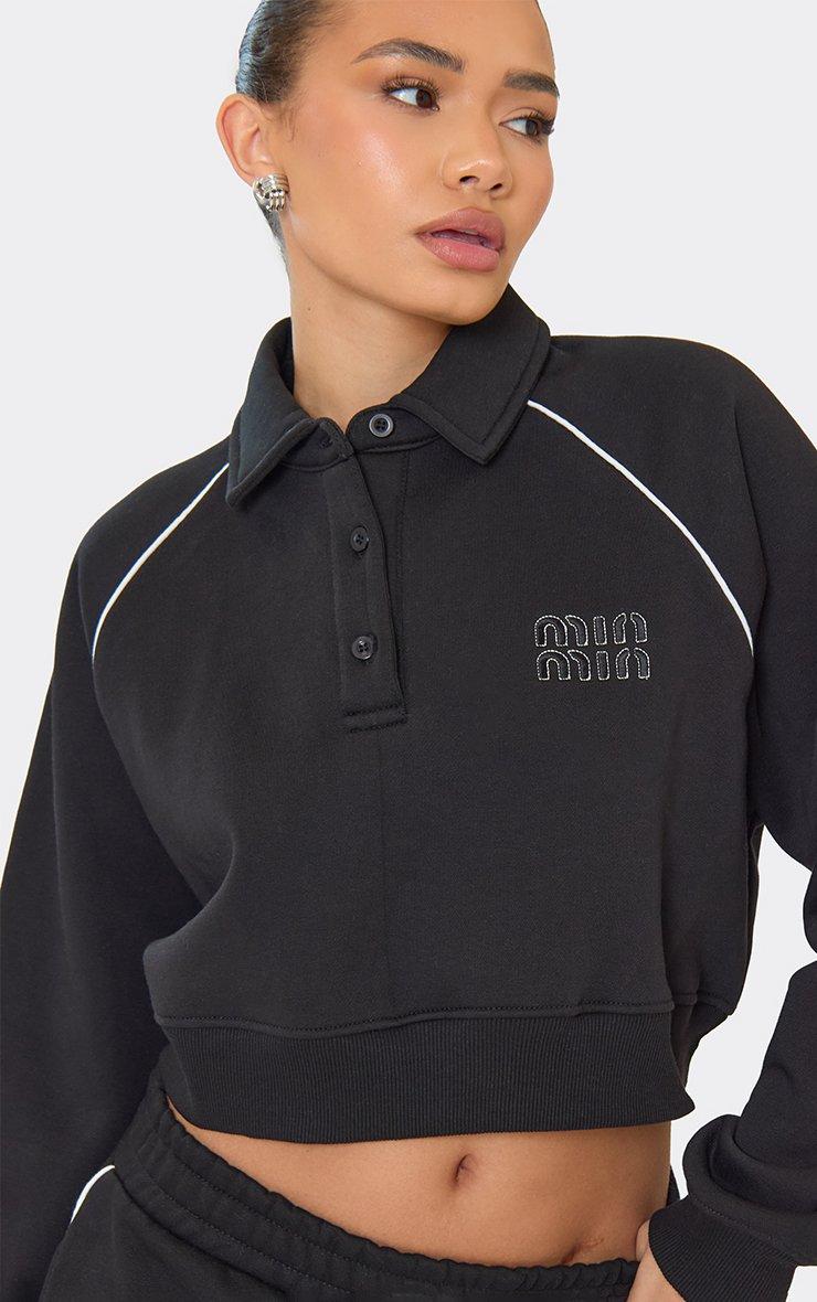 Button Detail 'Min Min' Graphic Cropped Sweatshirt In Black