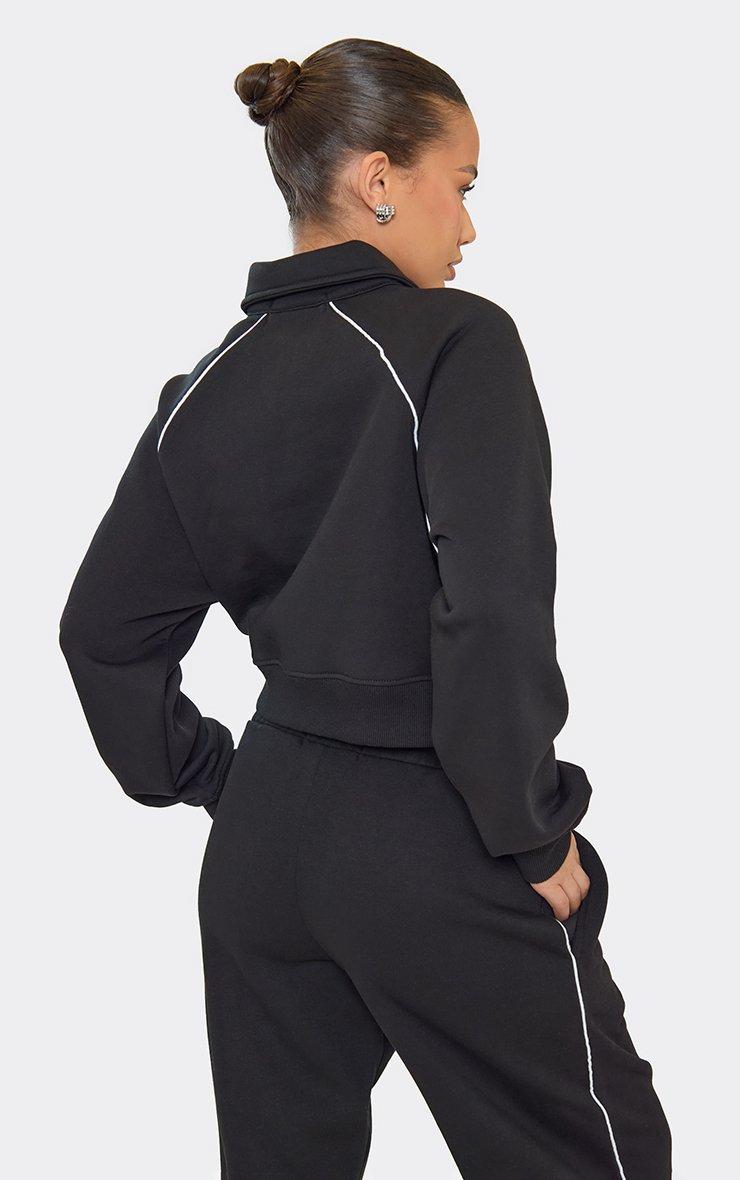 Long Sleeve Double Zip Fitted Top In Black