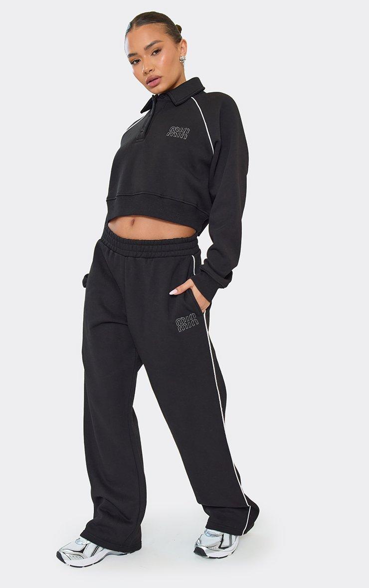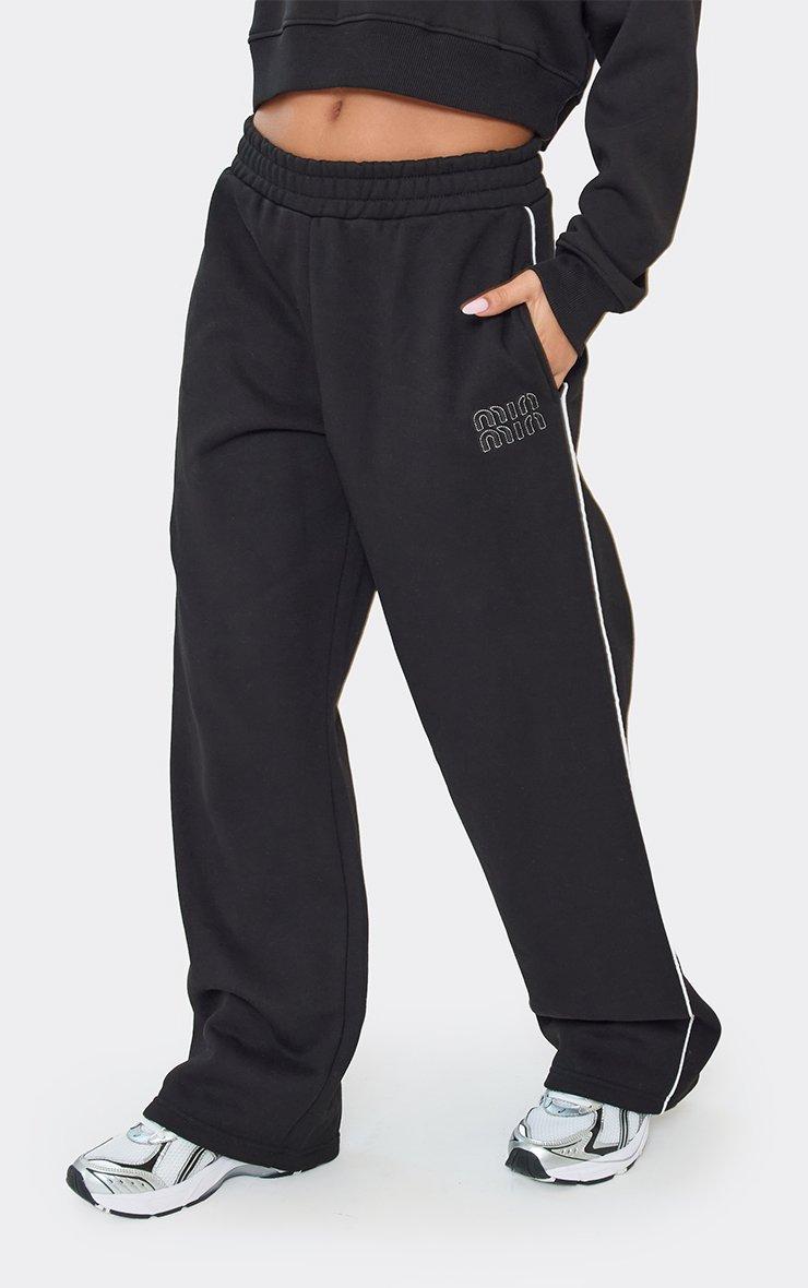Low Rise 'Min Min' Graphic Wide Leg Joggers In Black