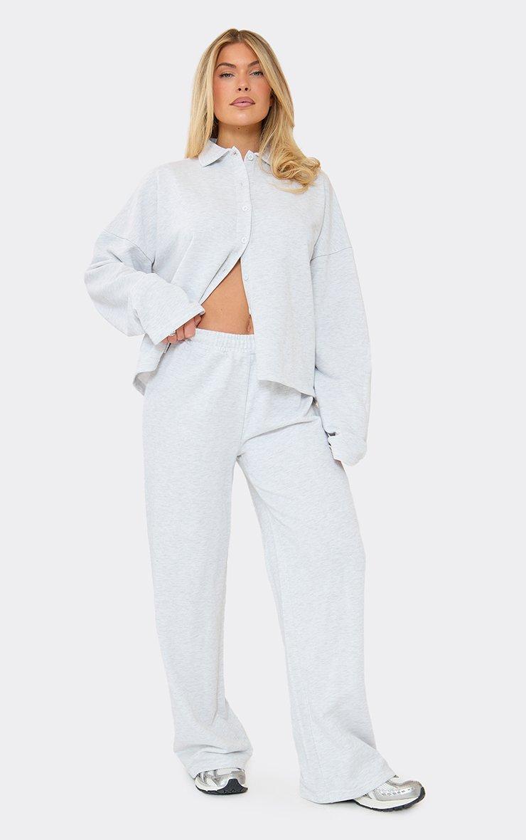 low rise elastic waistband wide leg joggers in grey marl