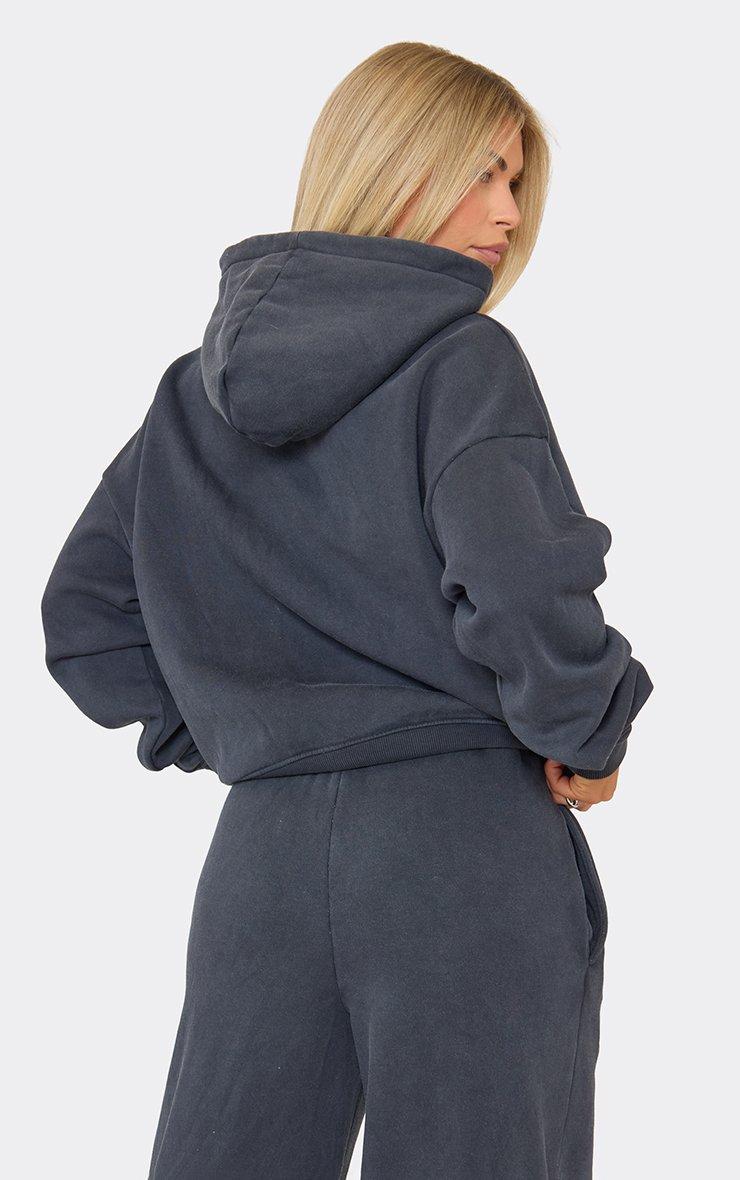 Ego Graphic Contrast Hem Cropped Hoodie In Grey