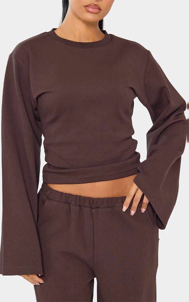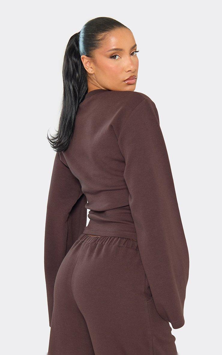 Long Sleeve Cinch Waist Detail Sweatshirt In Chocolate Brown