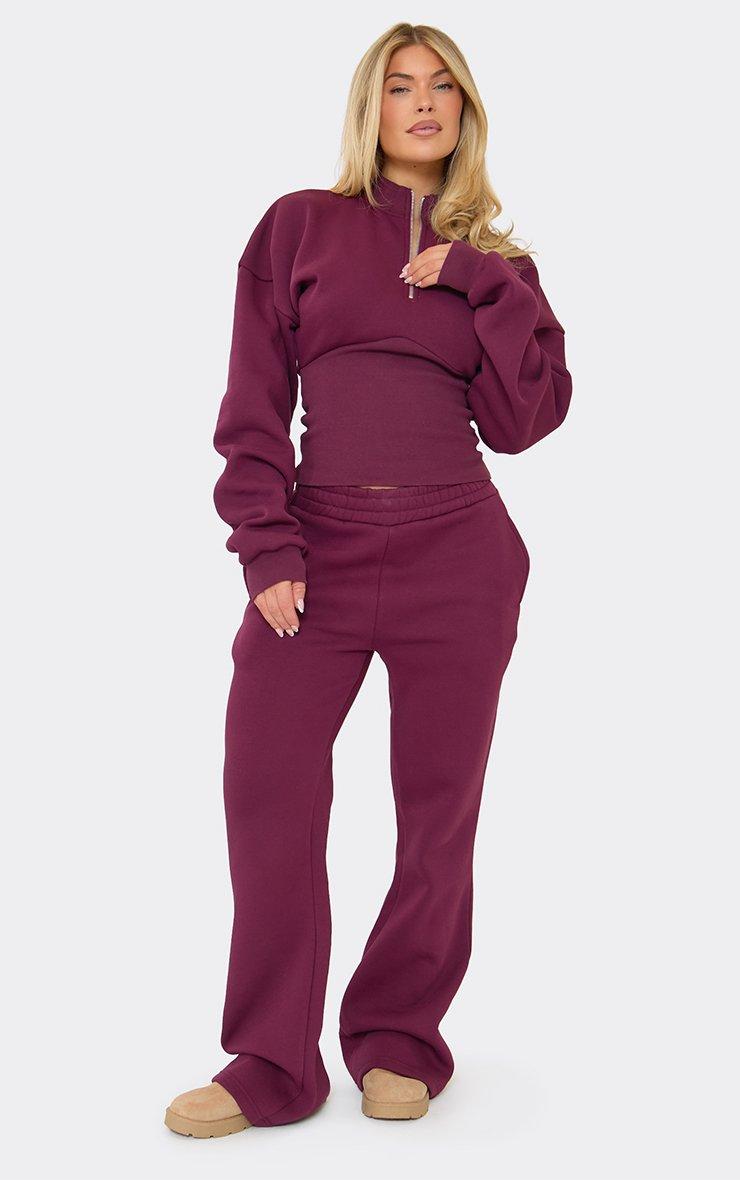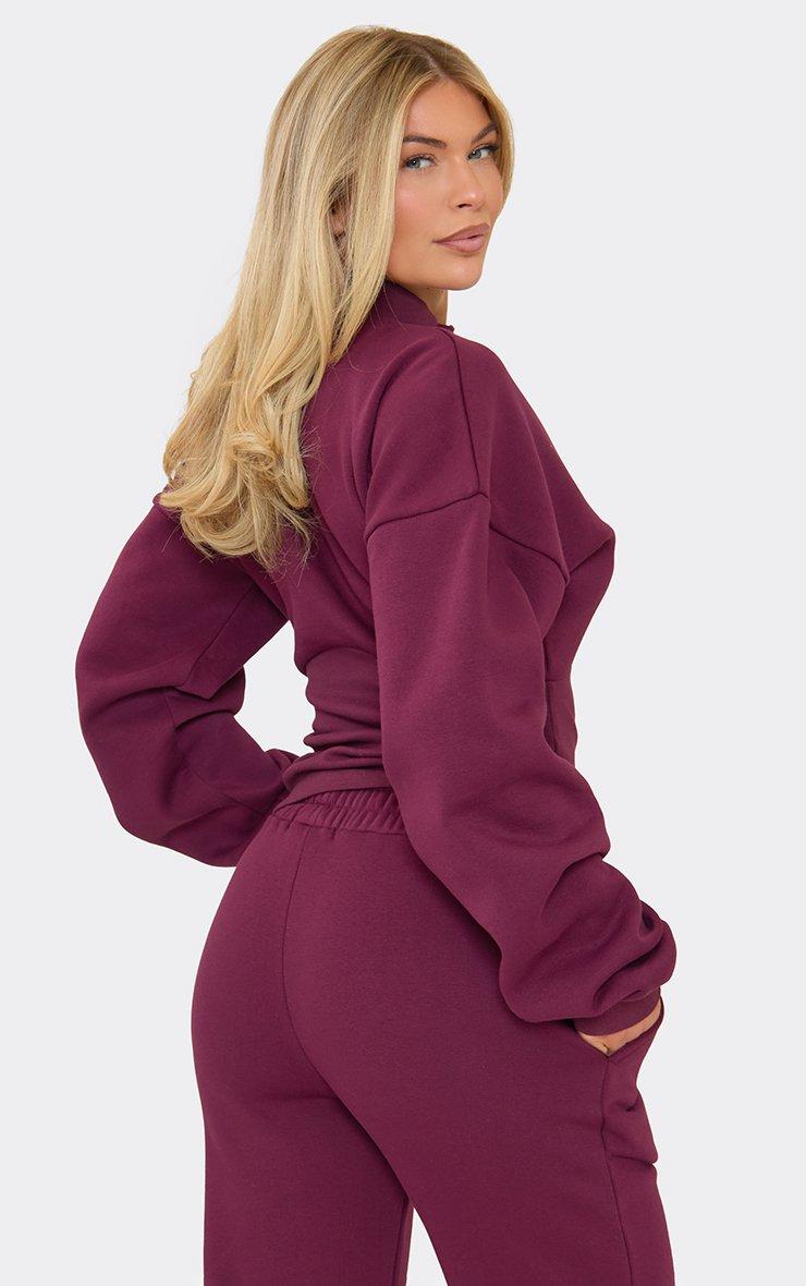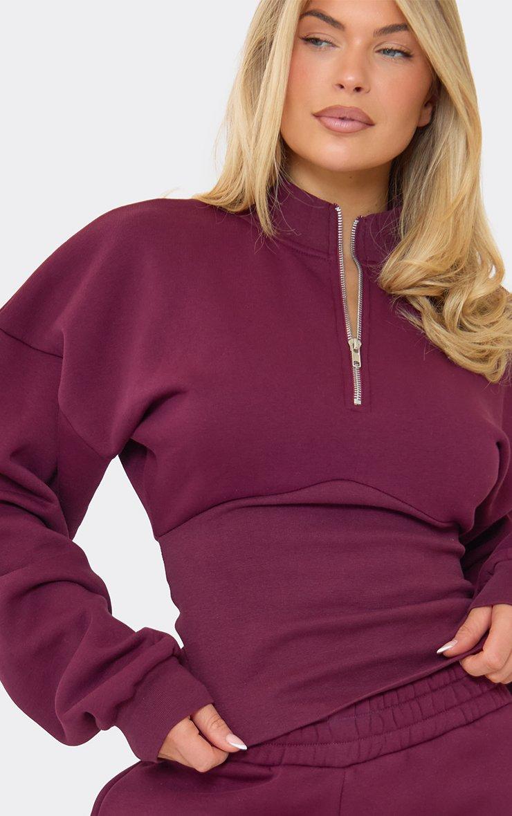 High Neck Quarter Zip Cinched Waist Detail Sweatshirt In Plum