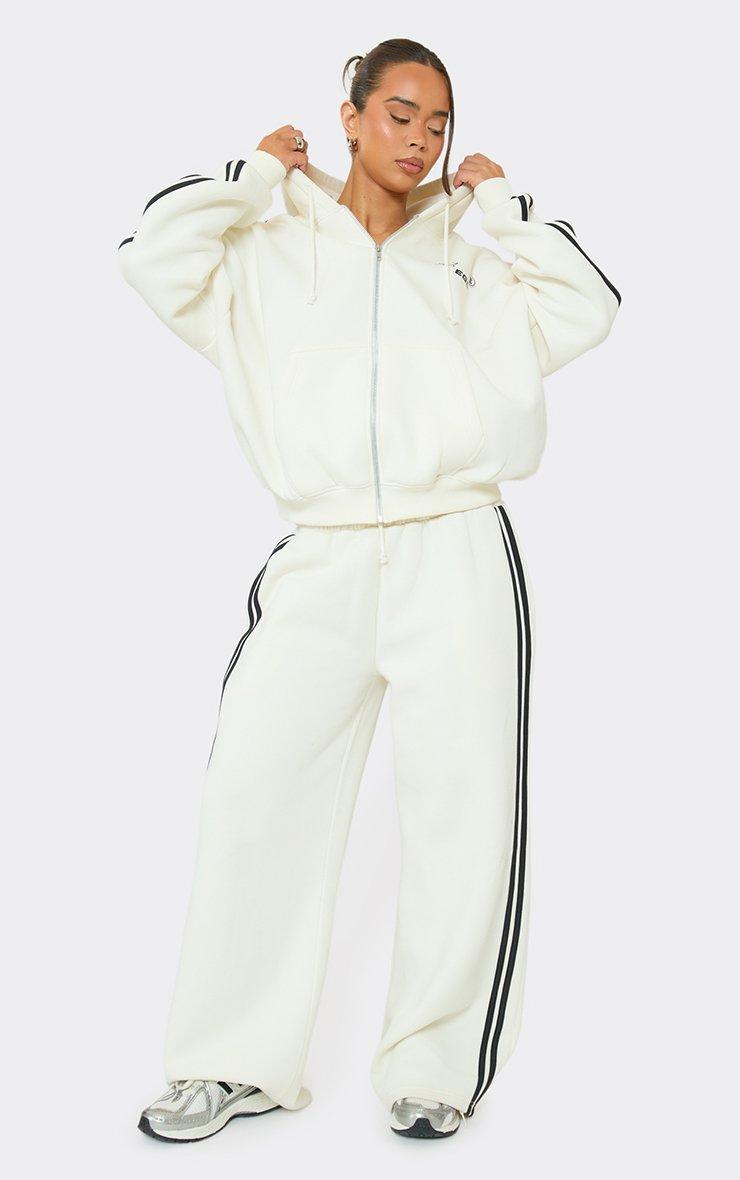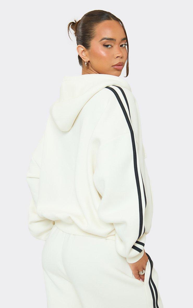 Oversized Striped Graphic Detail Zip Up Hoodie In Cream
