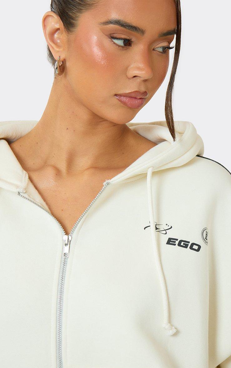 oversized striped graphic detail zip up hoodie in cream