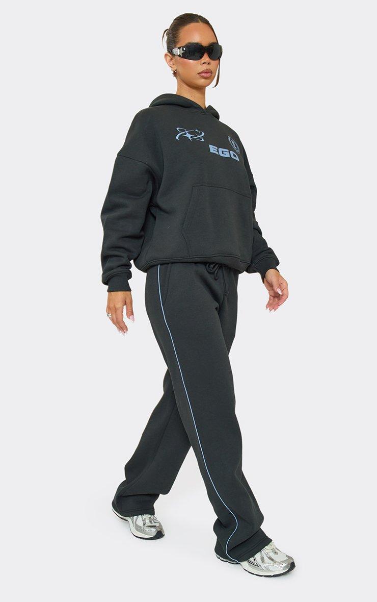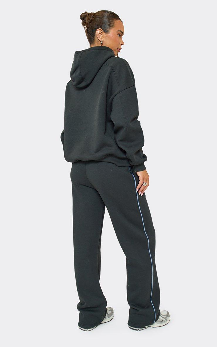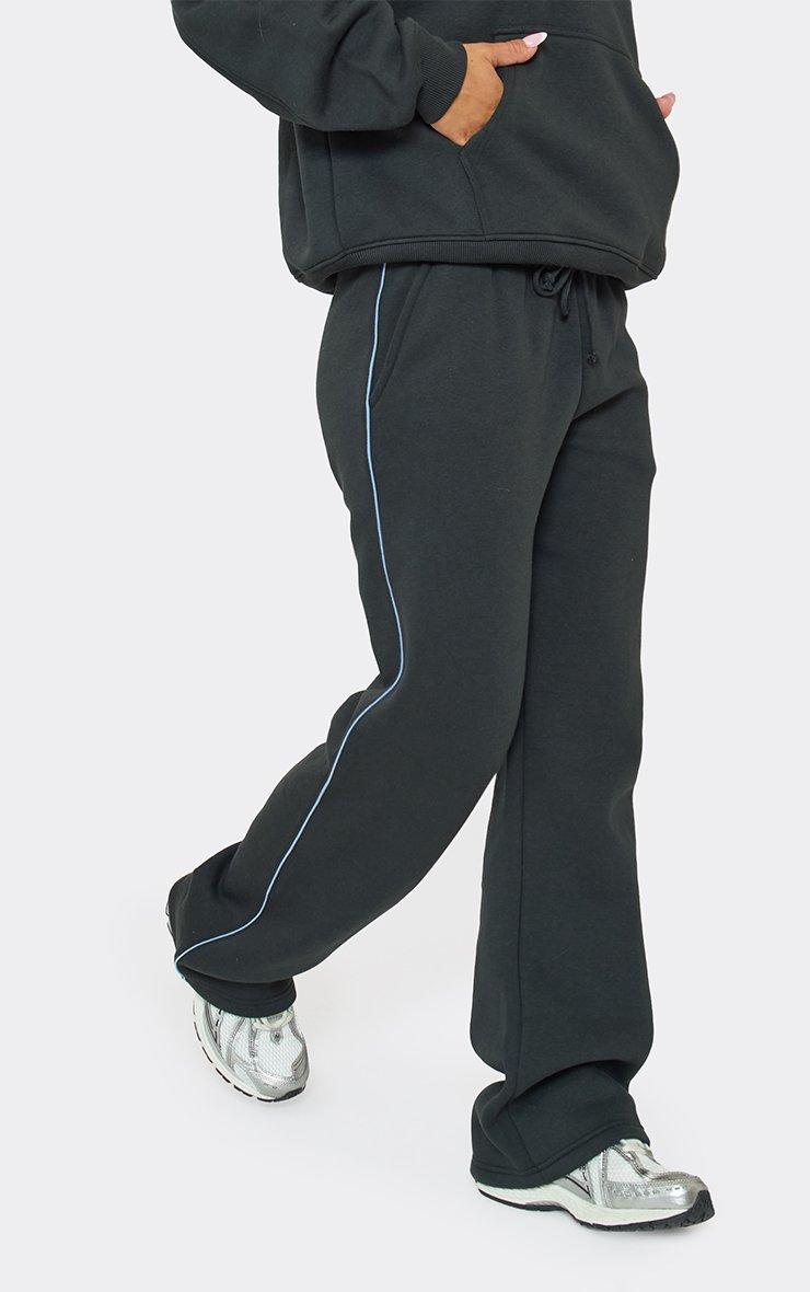 Mid Rise Striped Detail Wide Leg Joggers In Charcoal Grey