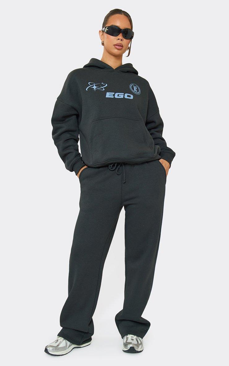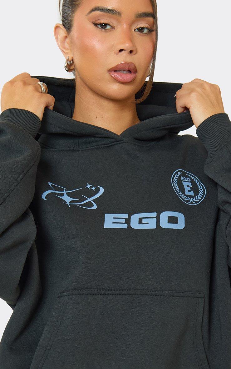 Oversized Graphic Detail Hoodie In Charcoal Grey
