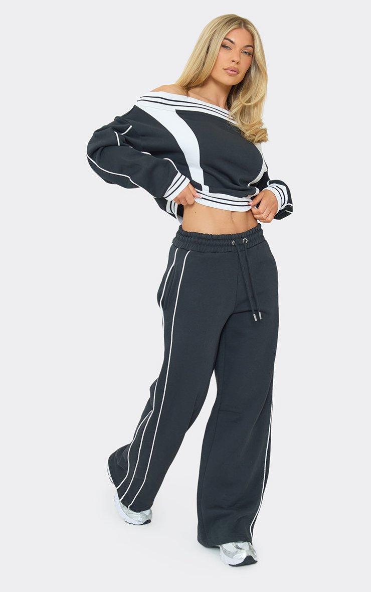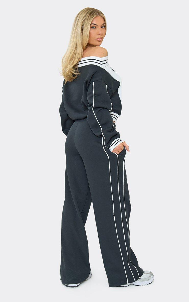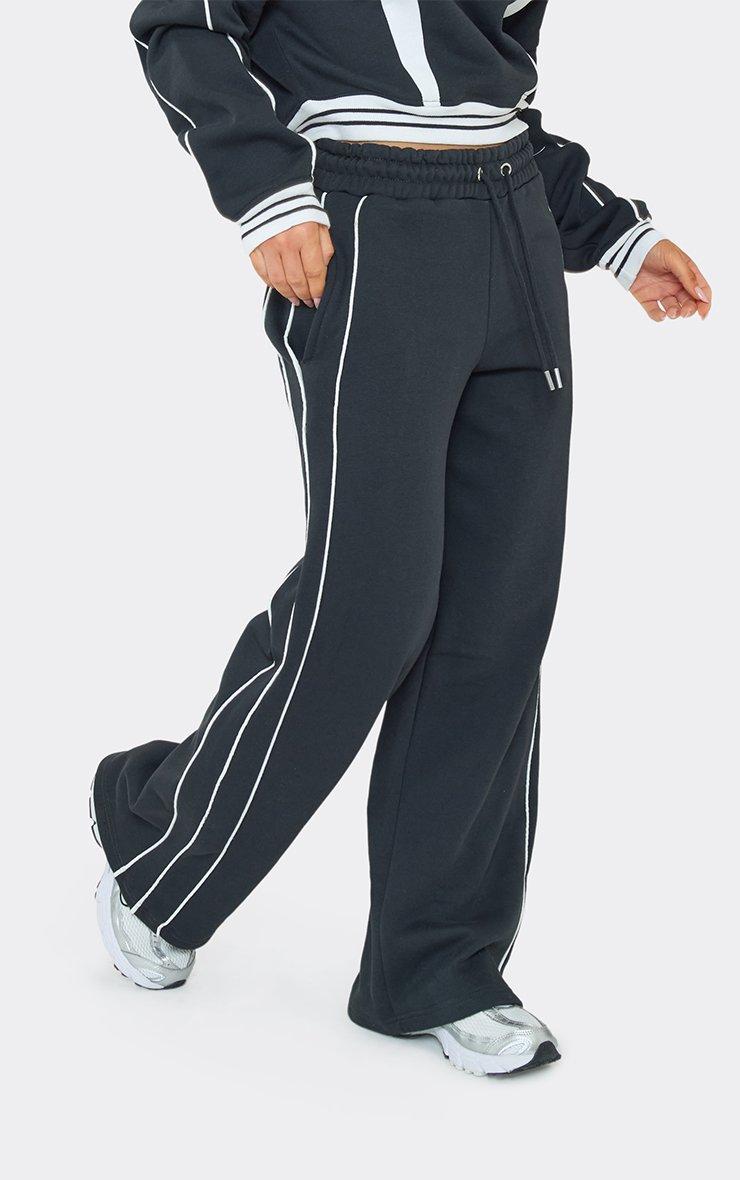 mid rise contrast stripe wide leg joggers in navy blue