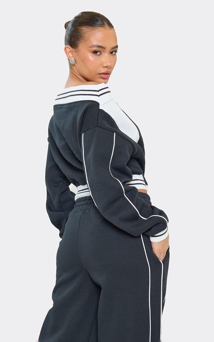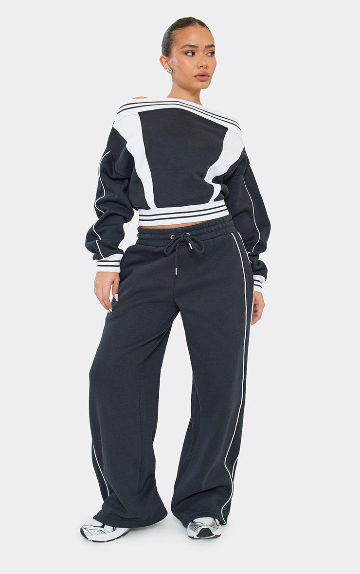 Mid Rise Contrast Piping Detail Wide Leg Joggers In Dark Navy Blue