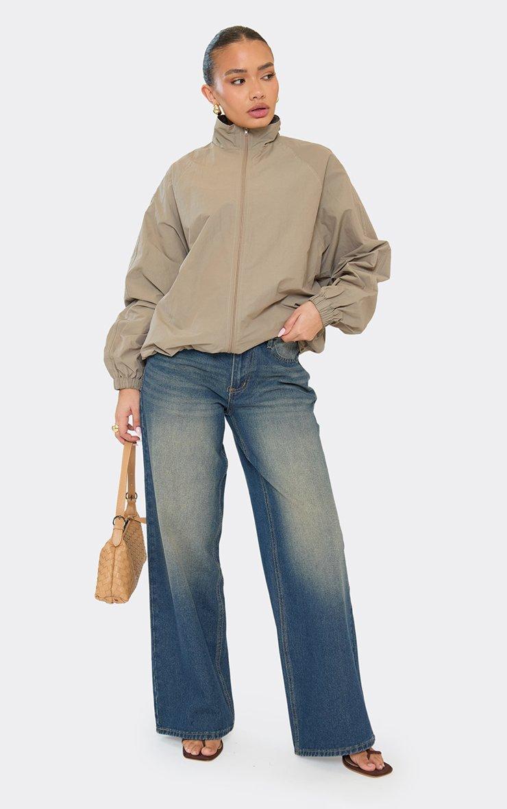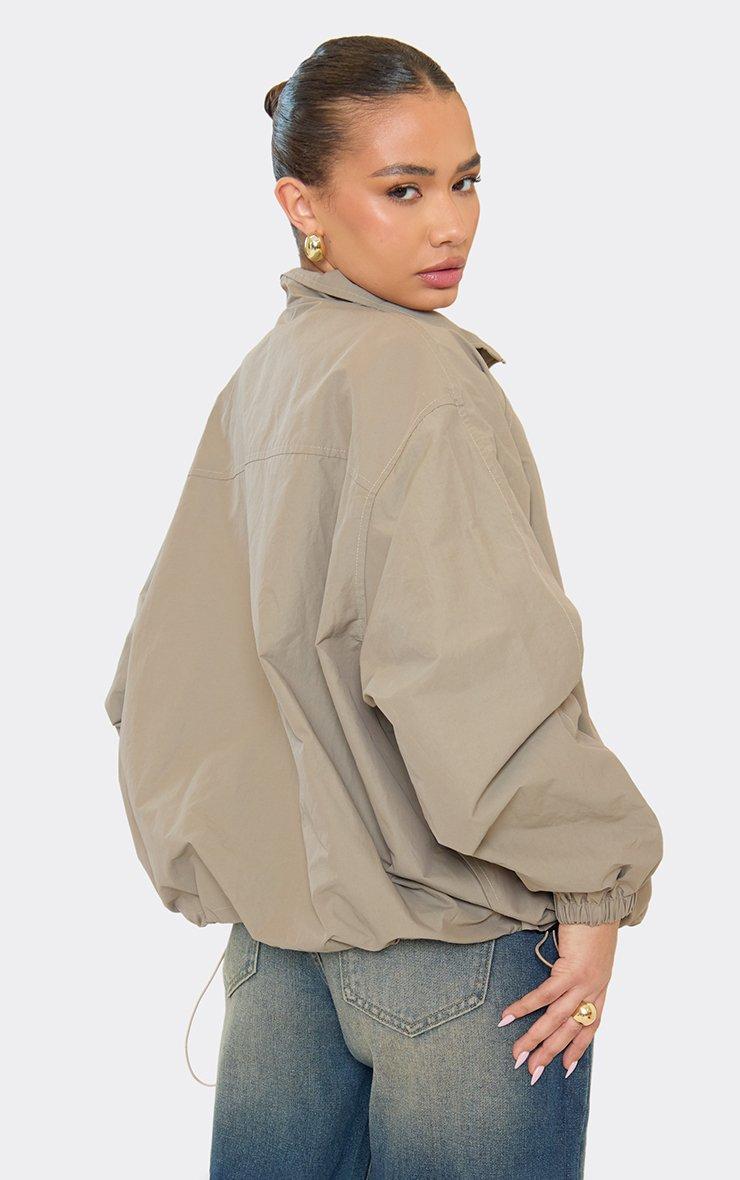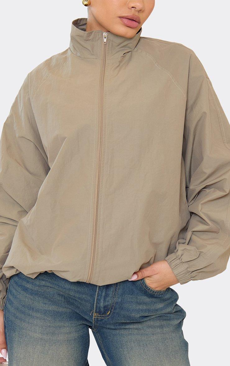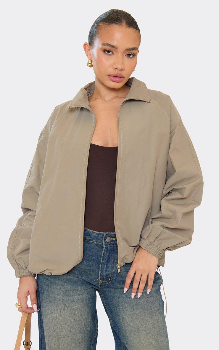Long Sleeve Zip Down Bomber Jacket In Beige Shell