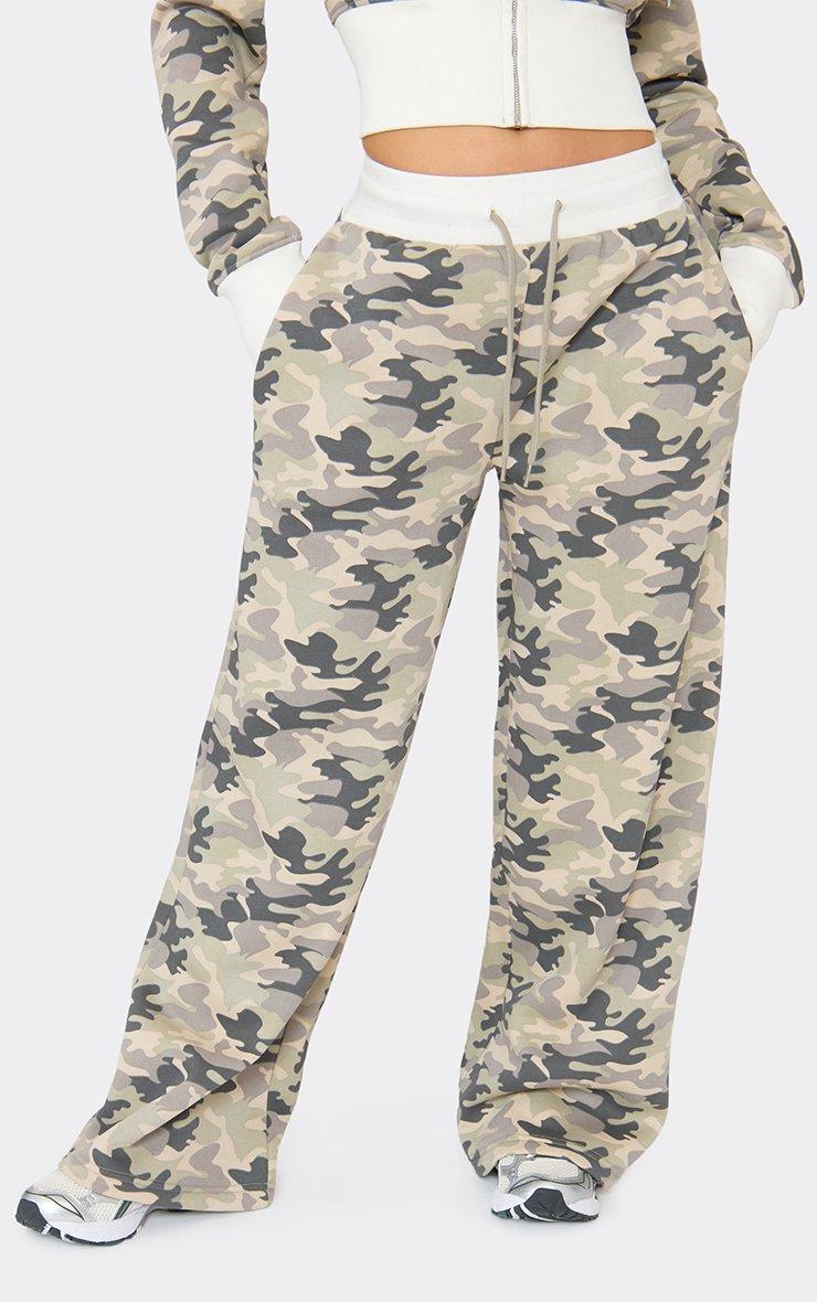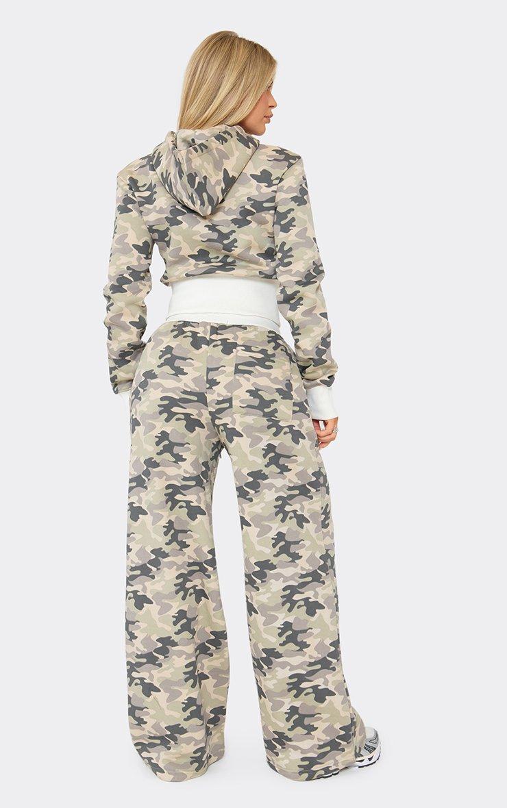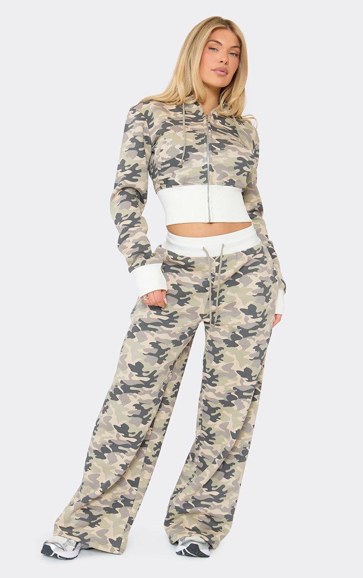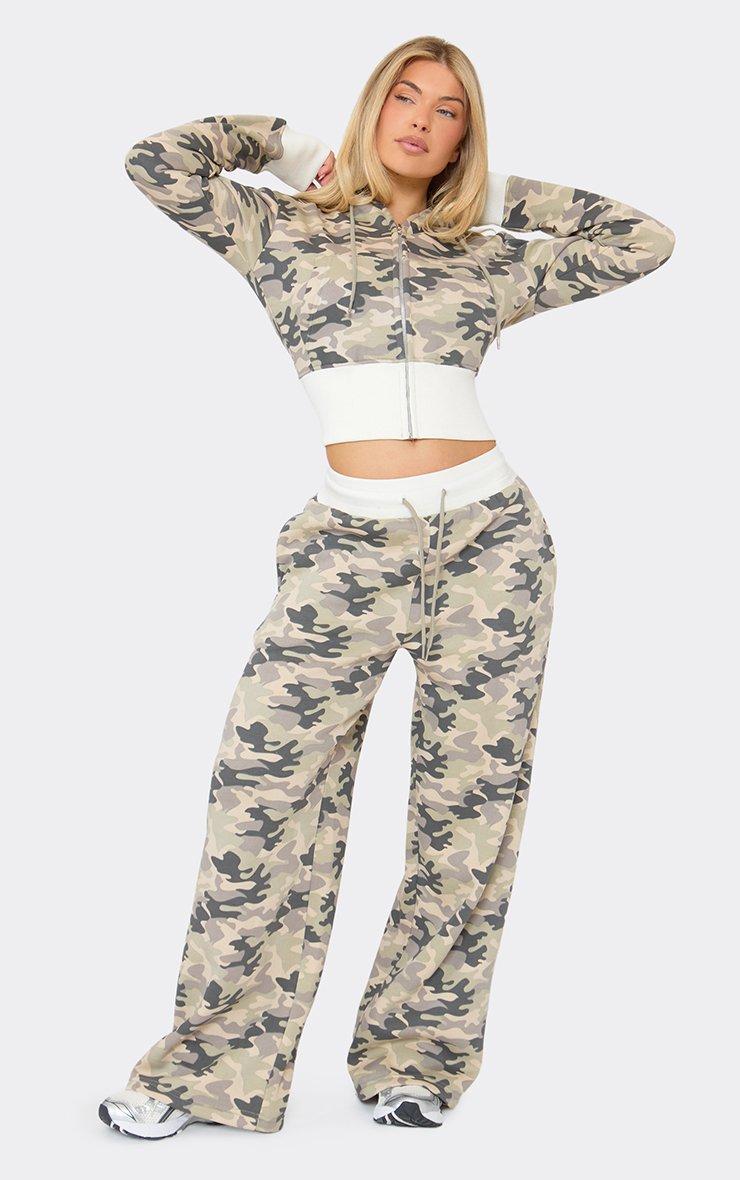 Cinched Waist Zip Up Jacket In Green Camo Print