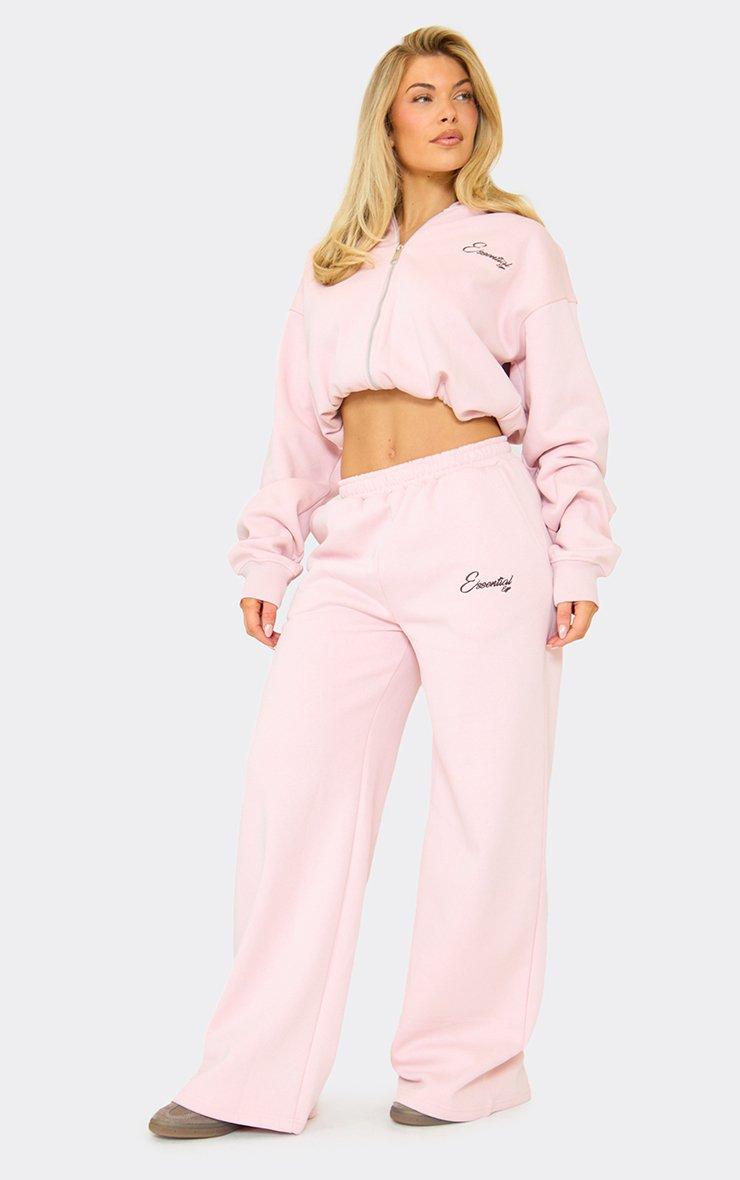 Low Rise Ego Heart Graphic Pocket Detail Wide Leg Joggers In Baby Pink