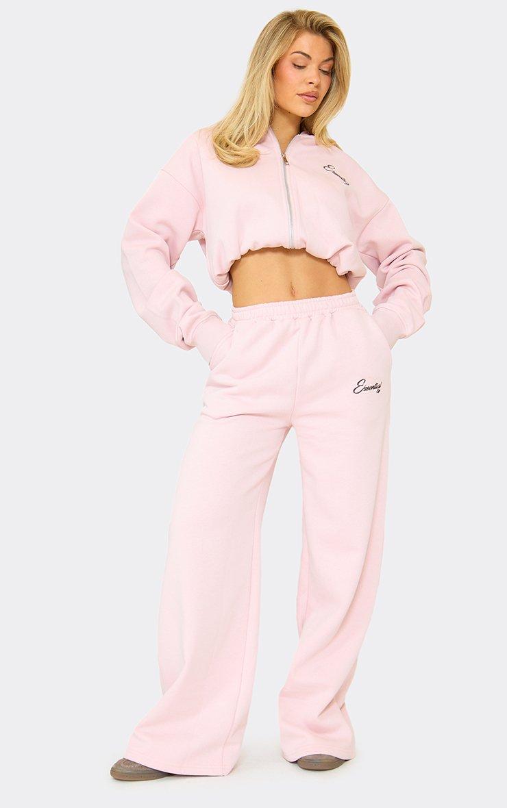Mid Rise Wide Leg Joggers In Baby Pink