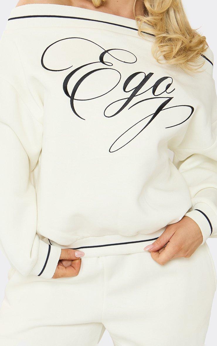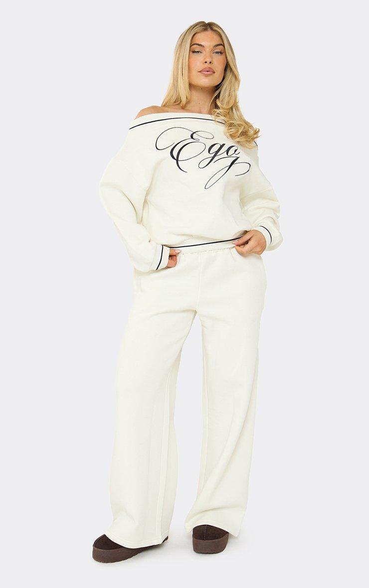 long sleeve off the shoulder graphic detail sweatshirt in cream