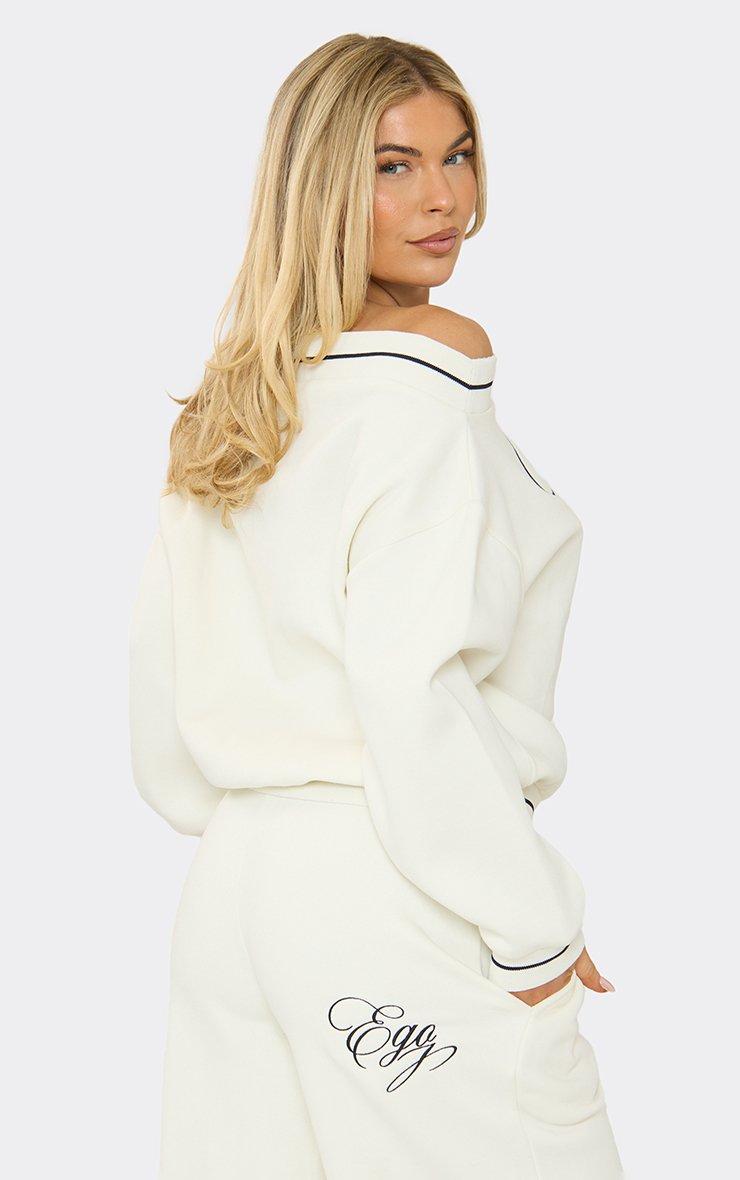 Long Sleeve Off The Shoulder Graphic Detail Sweatshirt In Cream