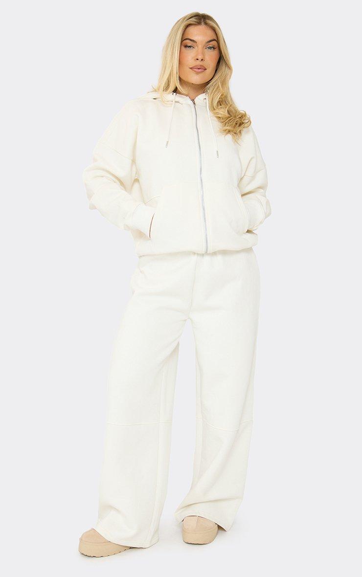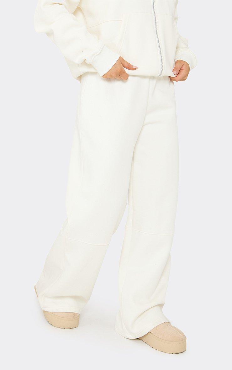 Low Rise Seam Detail Wide Leg Joggers In Cream