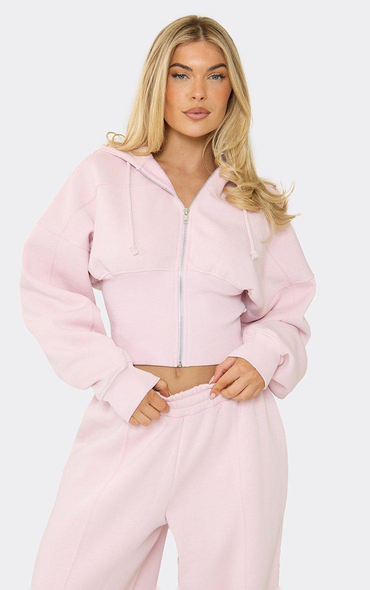 Long Sleeve Fitted Zip Up Jacket In Baby Pink
