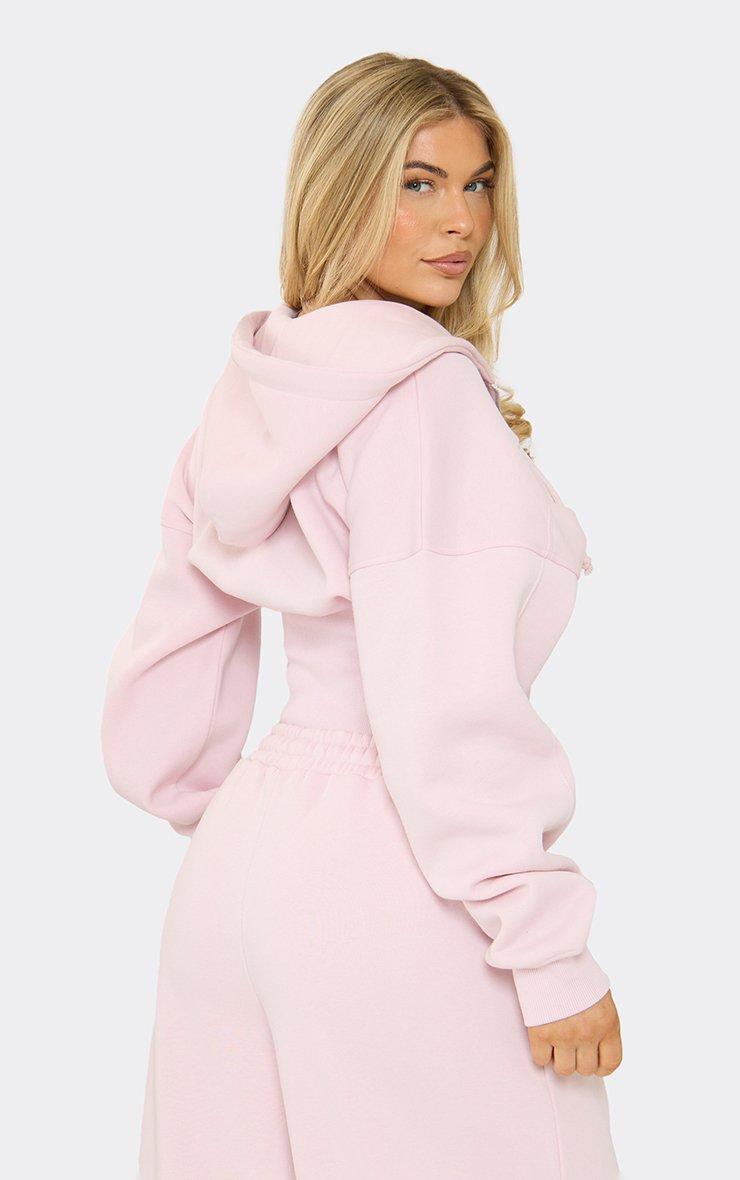 Zip Up Ego Borg Graphic Detail Boxy Hoodie In Baby Pink