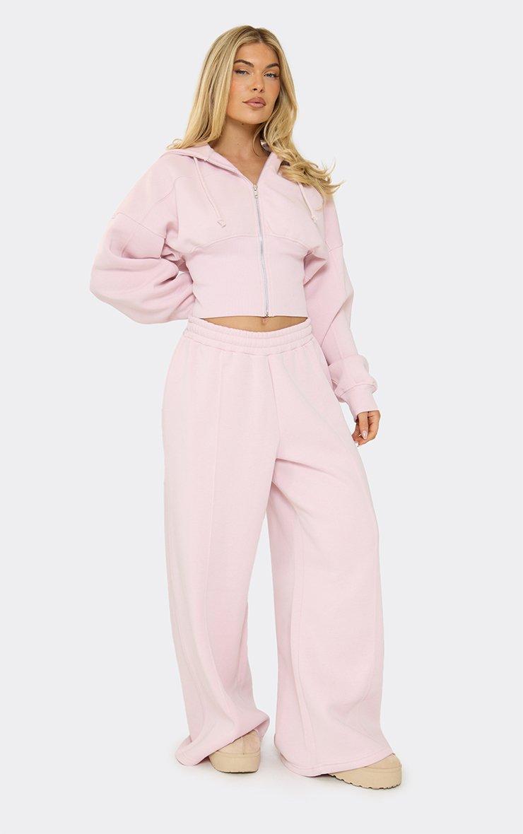 Low Rise Seam Detail Wide Leg Joggers In Pink