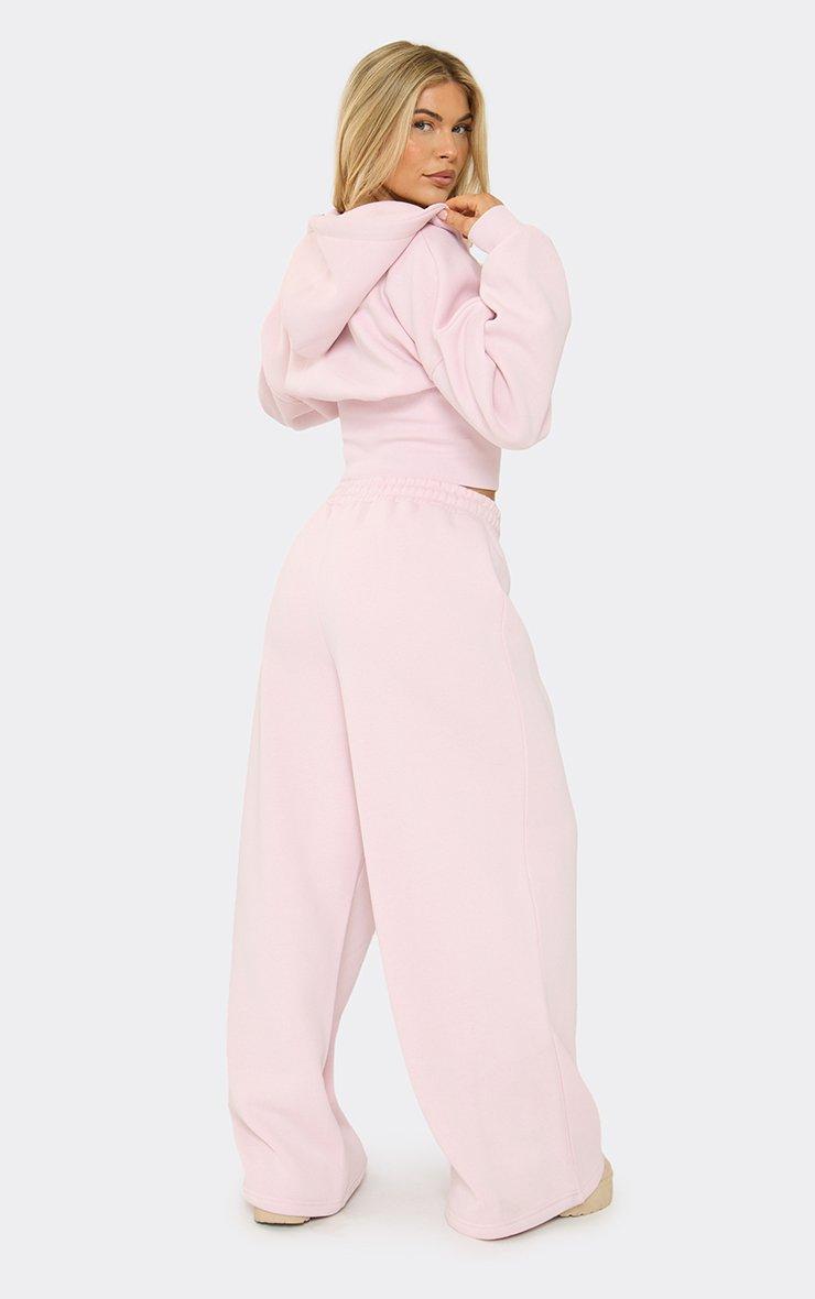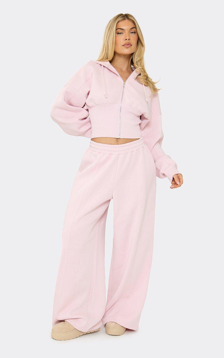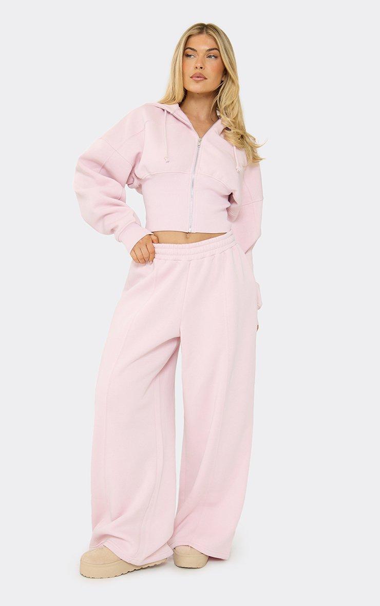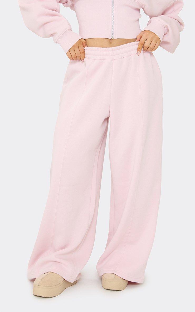 Low Rise Seam Detail Wide Leg Joggers In Pink