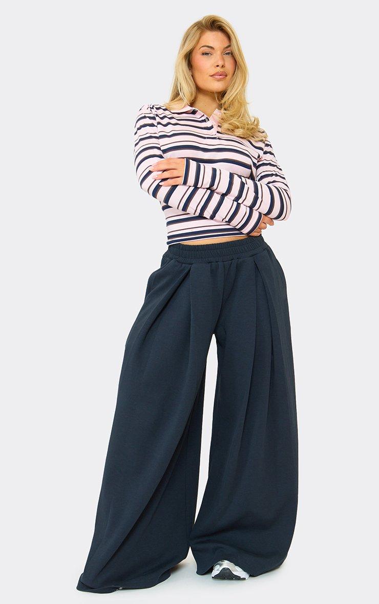 Long Sleeve Button Detail Cinched Waist Top In Pink Stripe