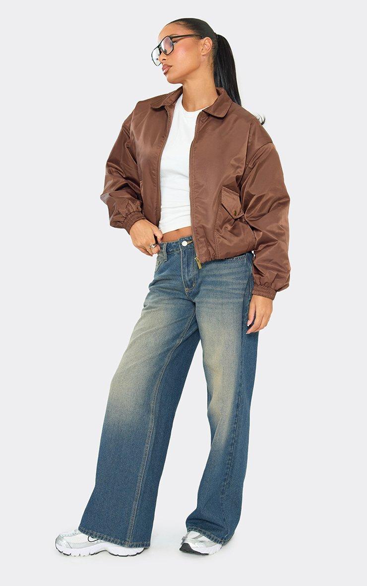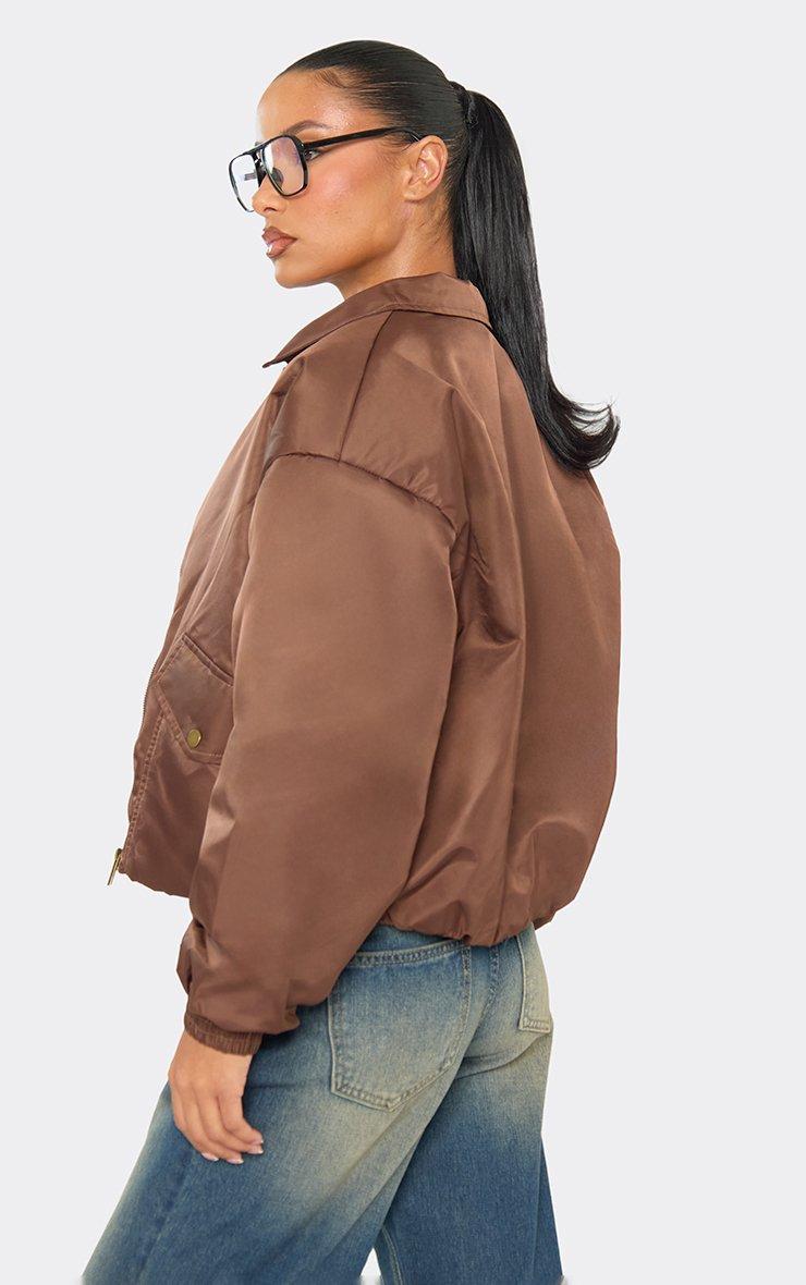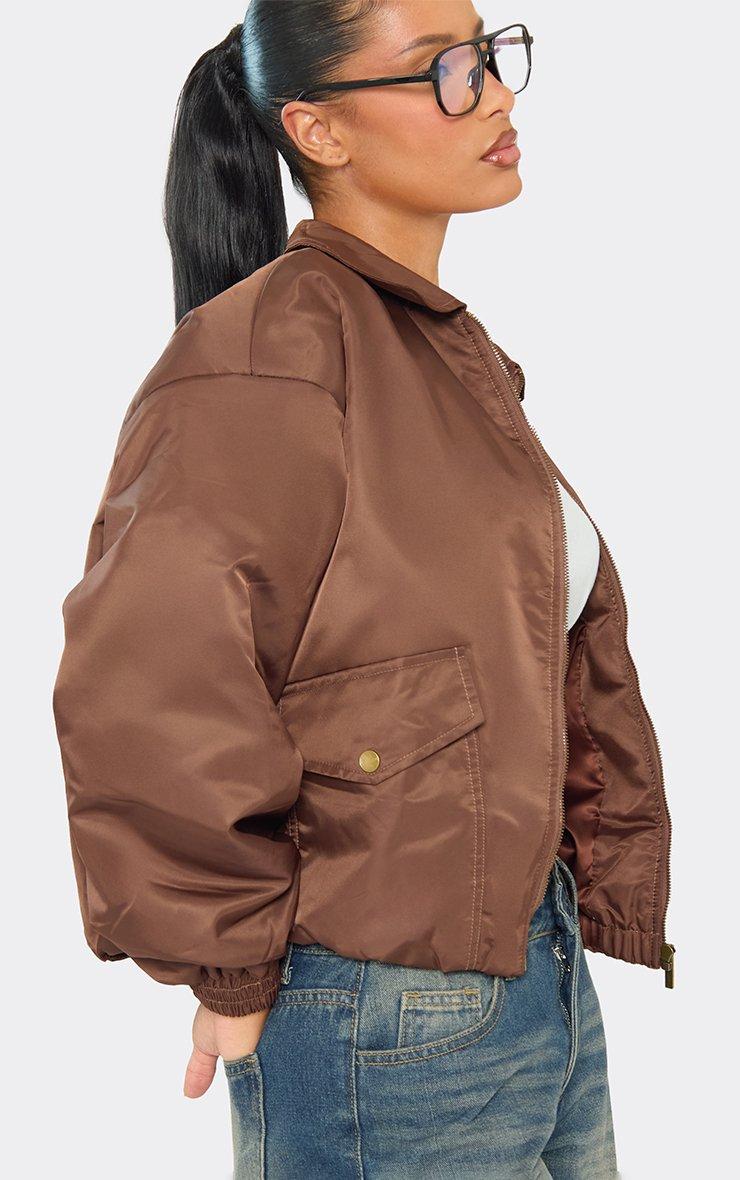 Collar Padded Bomber Jacket In Chocolate Brown