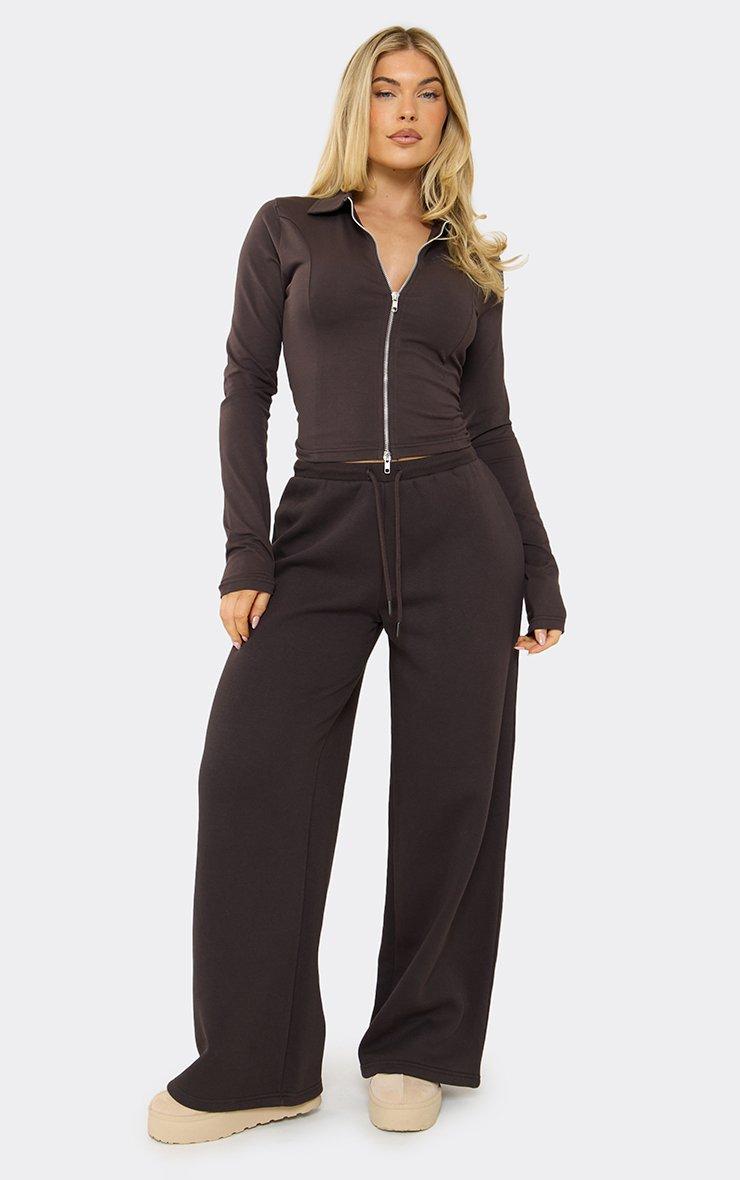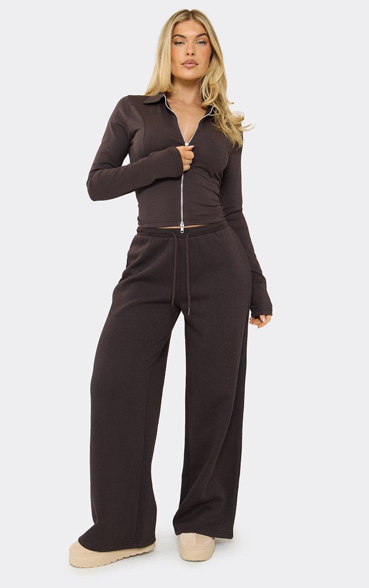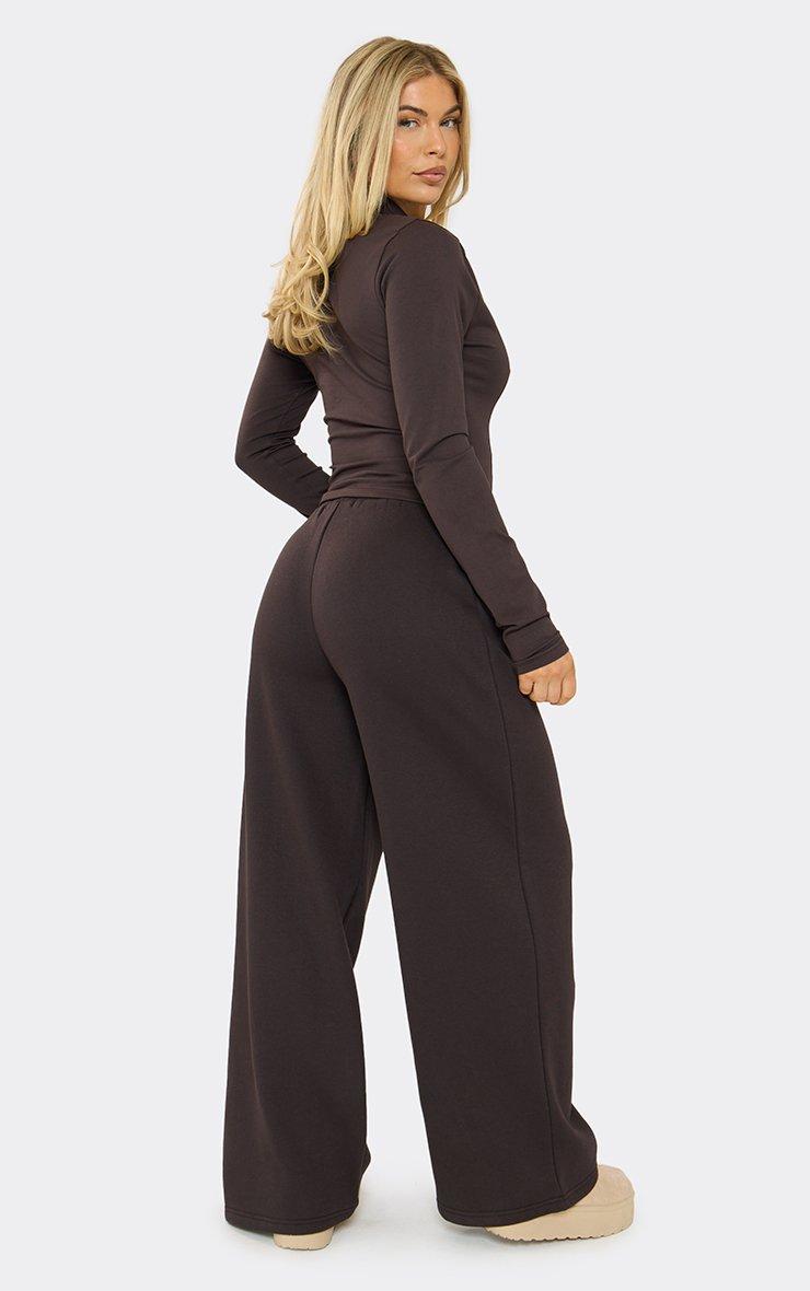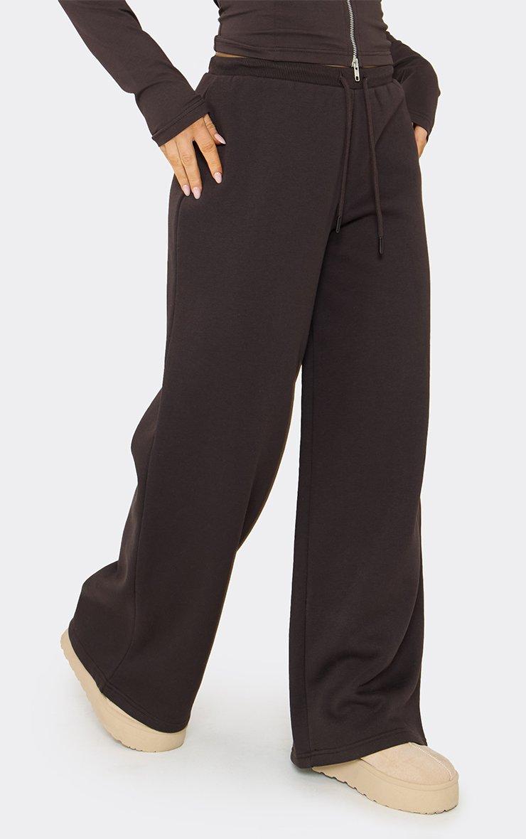 Low Rise Wide Leg Detail Joggers In Chocolate