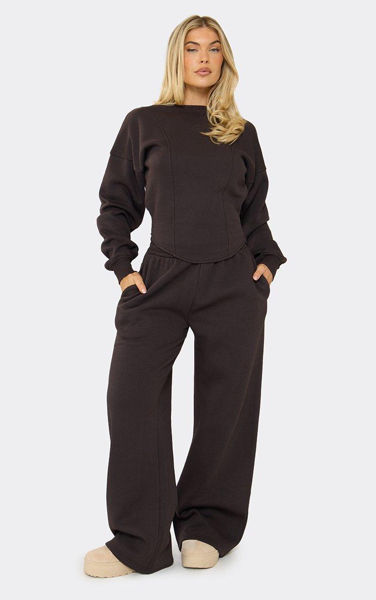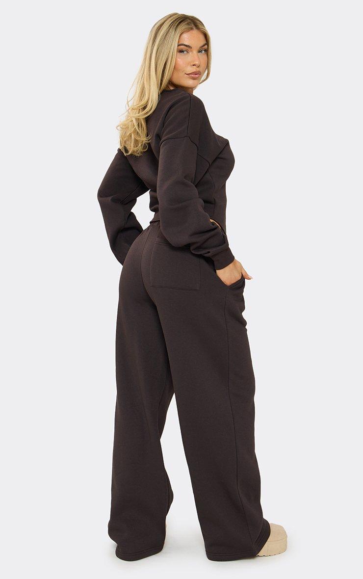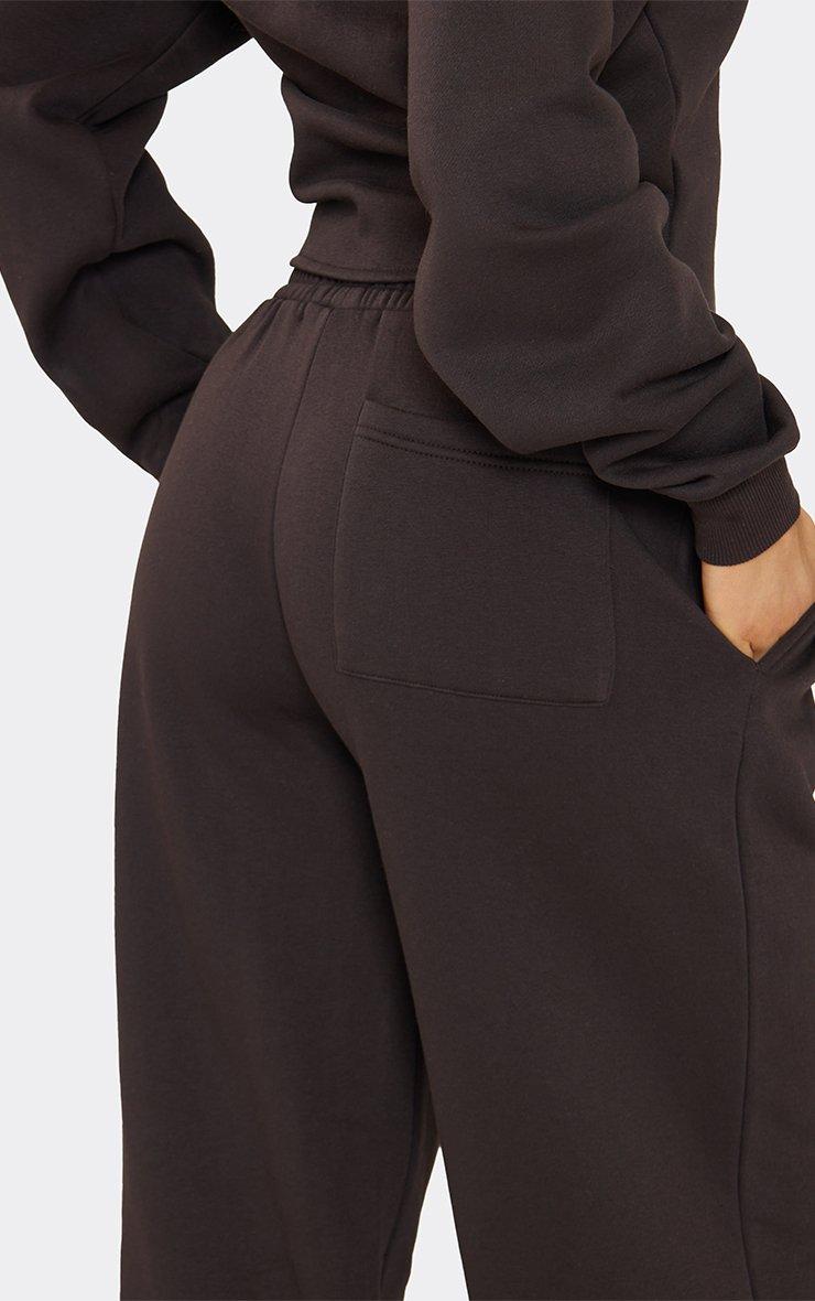 Low Rise Drawstring Wide Leg Joggers In Chocolate Brown