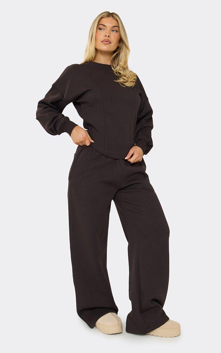 Long Sleeve Cinch Waist Detail Sweatshirt In Chocolate Brown