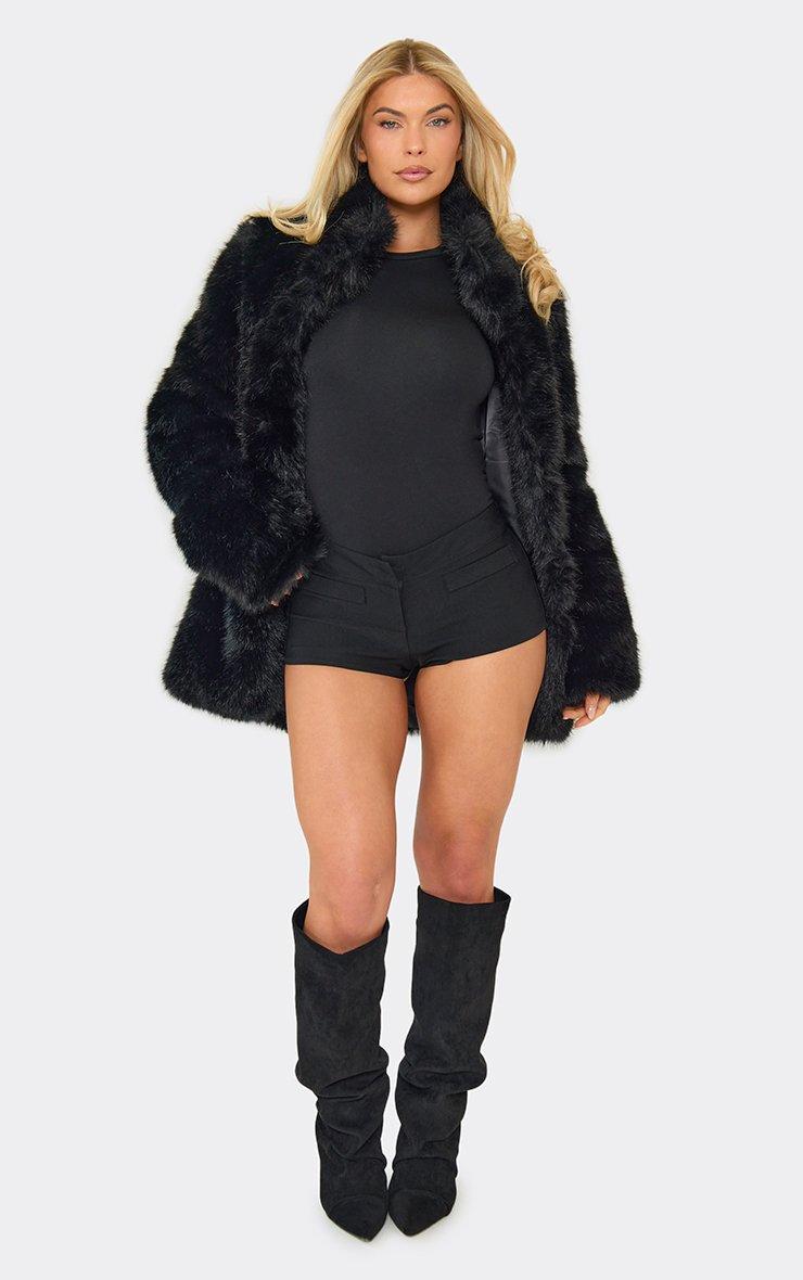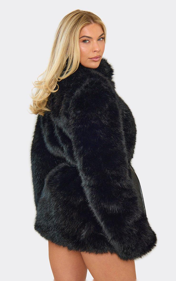 Oversized Maxi Coat In Black Faux Fur